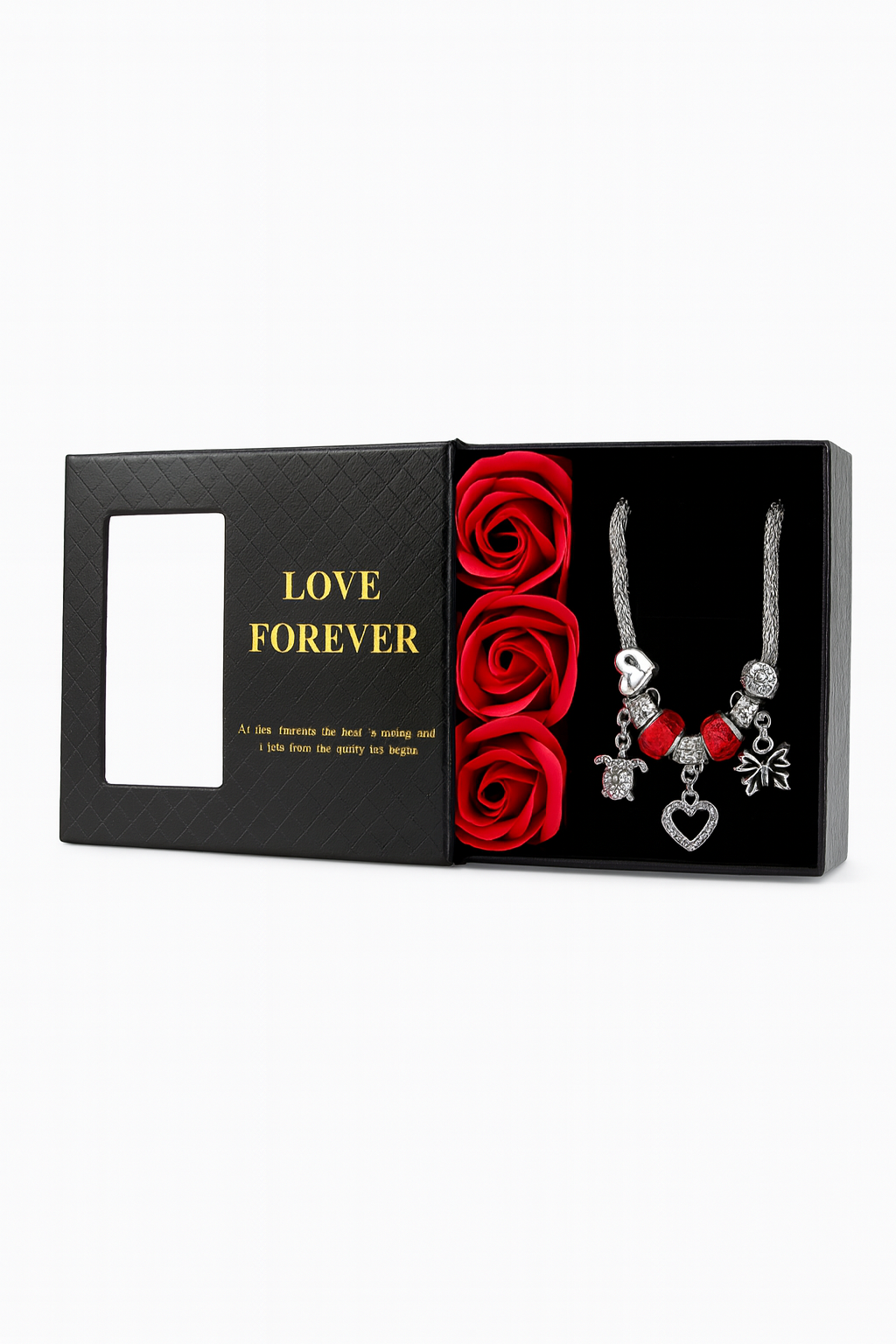 In compartimentul dedicat accesoriilor se afla o singura bratara decorativa tip charm, oferita ca surpriza. Modelul bratarii este random (poate diferi de la un set la altul), ceea ce face ca fiecare cutie sa fie unica si speciala. Acest detaliu adauga un plus de exclusivitate si emotie cadoului, transformandu-l intr-o surpriza autentica.
