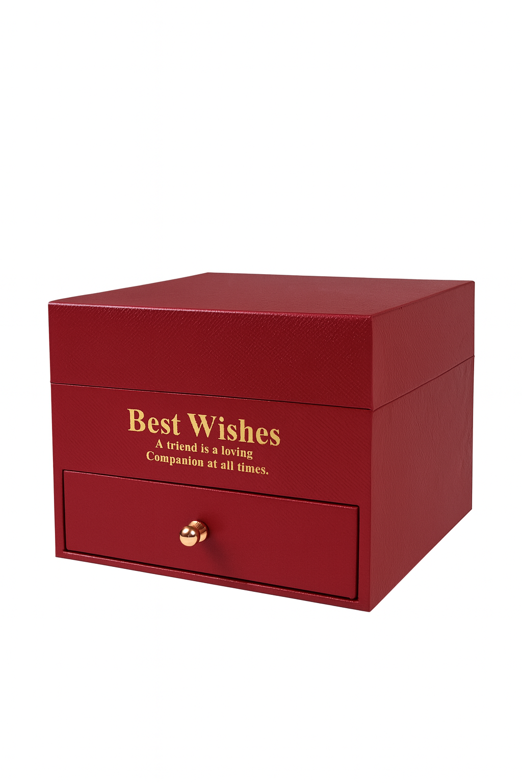 Cutia este realizata din materiale premium, cu finisaje elegante si mesaje decorative precum „I Love You” si „Best Wishes”, accentuand caracterul romantic al produsului. Intregul set este gata de oferit, fiind insotit de punga cadou inclusa, pentru o prezentare impecabila.