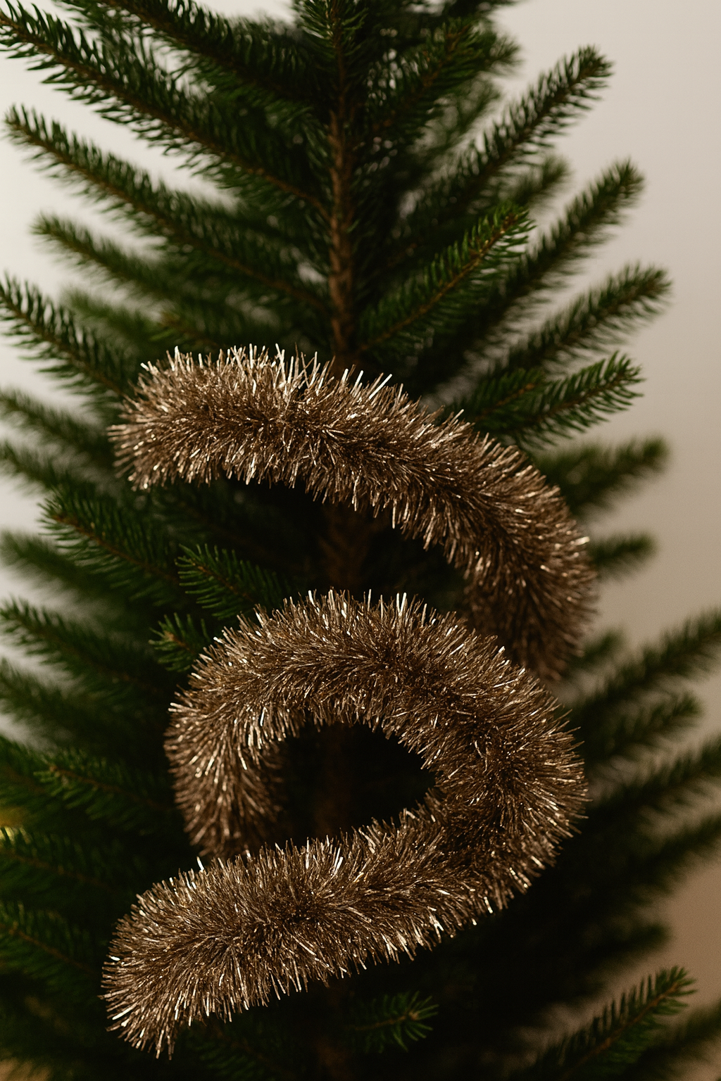 Completeaza decorul de sarbatori cu aceasta beteala auriu inchis ultra stufos, cu diametru de aproximativ 6 cm si lungime de 190 cm. Nuanta de auriu inchis, calda si rafinata, ofera bradului un aspect luxuriant si festiv, perfect pentru decoruri elegante sau tematice.