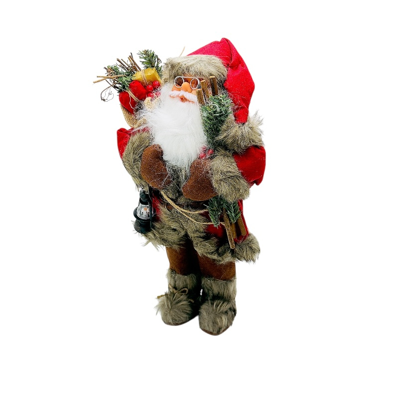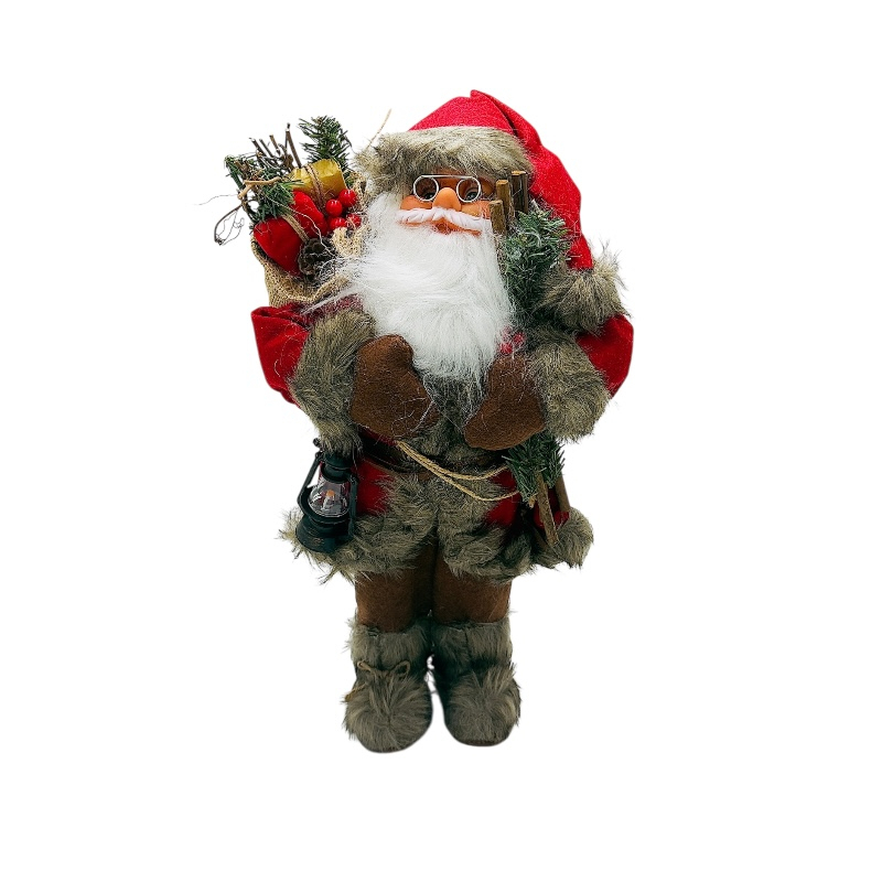 Mos Craciun decorativ 45 cm rustic cu sac, crengute si lampa
