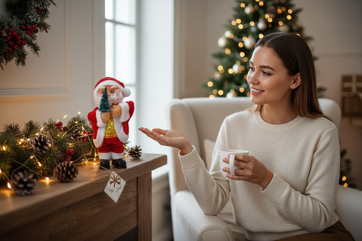 Adu magia sarbatorilor in casa cu acest Mos Craciun muzical, o figurina decorativa adorabila care reda melodii festive si tine in maini un bradut miniatural. Perfect pentru a crea atmosfera calda si vesela de Craciun in orice incapere.