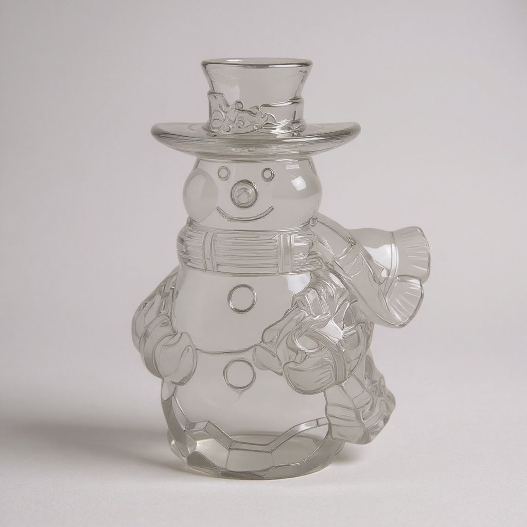 Om de zapada decorativ realizat integral din sticla transparenta, prevazut cu lumini LED pentru un efect luminos elegant si festiv. O decoratiune perfecta pentru sarbatori, potrivita atat pentru casa, cat si pentru vitrine sau aranjamente tematice.