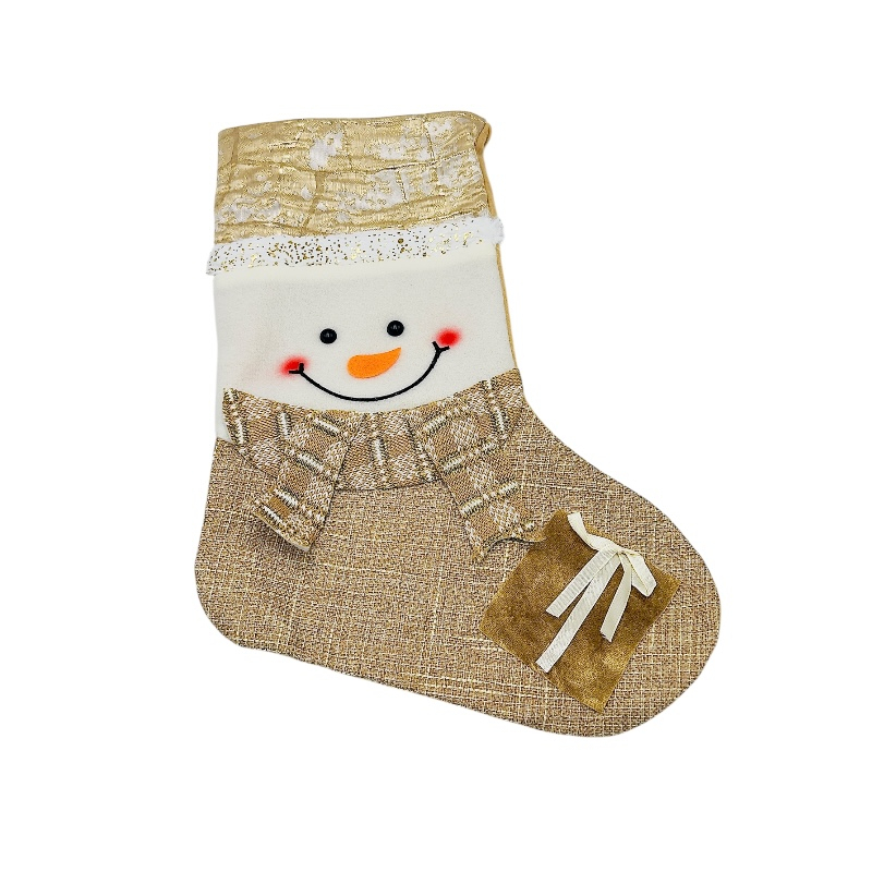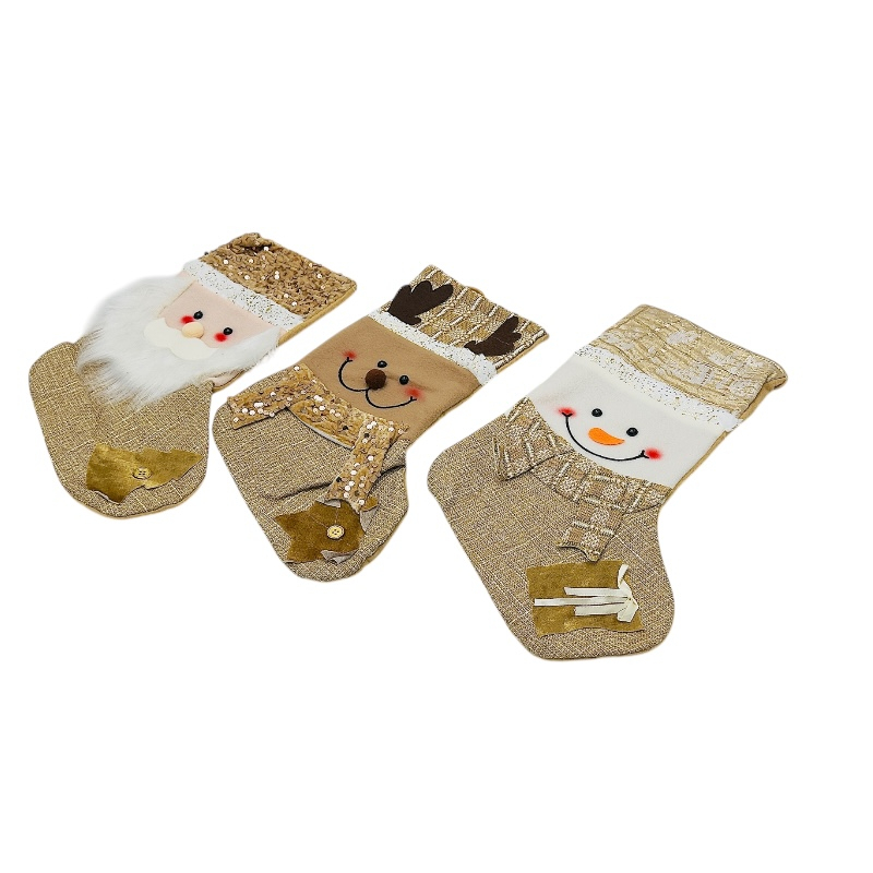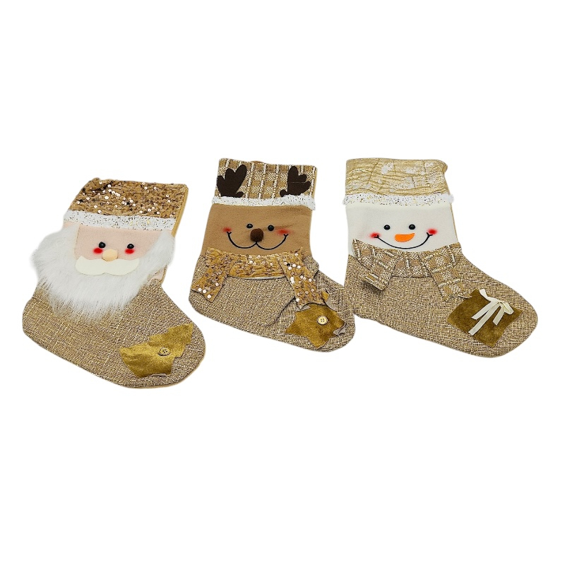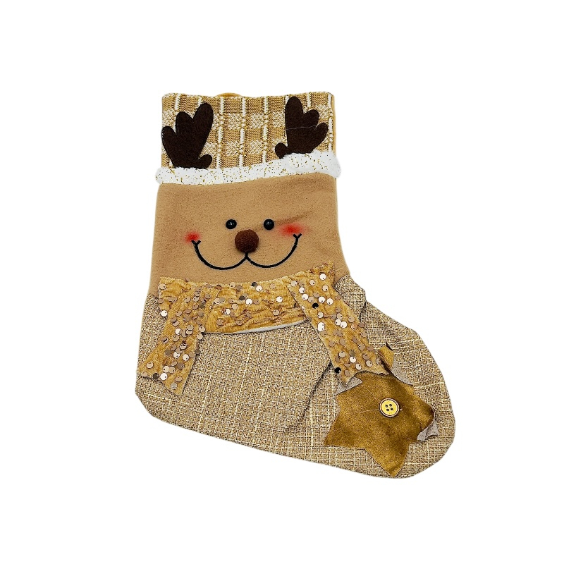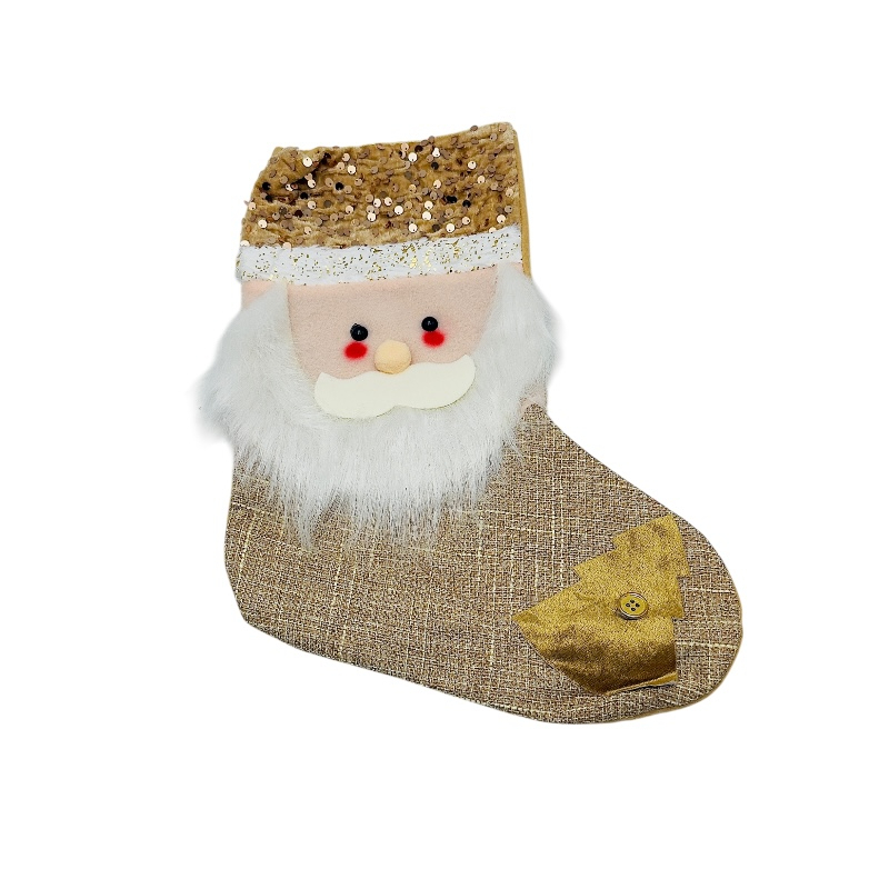 Ciorap Craciun decorativ textil auriu 35x26.5 cm – Mos, Ren sau Om de Zapada