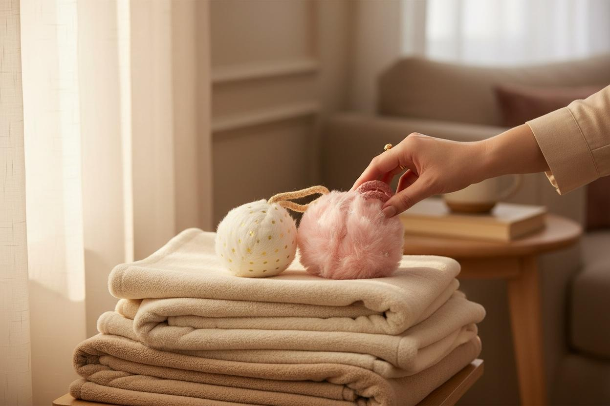 Acest set conține 12 globuri decorative pufoase, realizate din materiale moi si placute la atingere. Fiecare glob are diametrul de 6 cm si este prevazut cu snur textil rezistent, ideal pentru agatare pe brad, perete, manere sau alte zone decorative.
