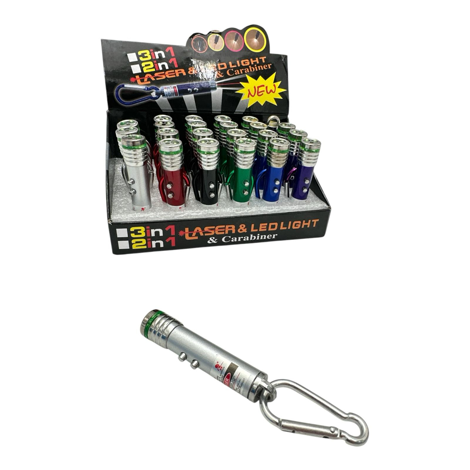 Alege un accesoriu practic si inteligent cu aceasta lanterna tip breloc cu doua LED-uri si laser pointer integrat, ideala pentru utilizare zilnica, drumetii, cautare in intuneric sau prezentari rapide. Cu un design compact si usor, poate fi atasata la chei, geanta sau rucsac, oferind lumina si semnalizare la indemana in orice moment.Aceasta lanterna multifunctionala este echipata cu 2 LED-uri puternice pentru iluminare si un pointer laser rosu, fiind un gadget util atat in activitati outdoor, cat si in interior. Carcasa este usoara, dar rezistenta, perfecta pentru utilizare frecventa.Caracteristici produs:Tip: lanterna multifunctionala tip brelocFunctii: 2 LED-uri albe + laser pointer rosuDesign: compact, usor, cu prindere tip brelocUtilizare: chei, camping, semnalizare, prezentariMaterial: plastic rezistentActivare: butoane separate pentru LED si laserAlimentare: baterii (incluse)Portabilitate: se ataseaza usor la chei, rucsac sau geanta