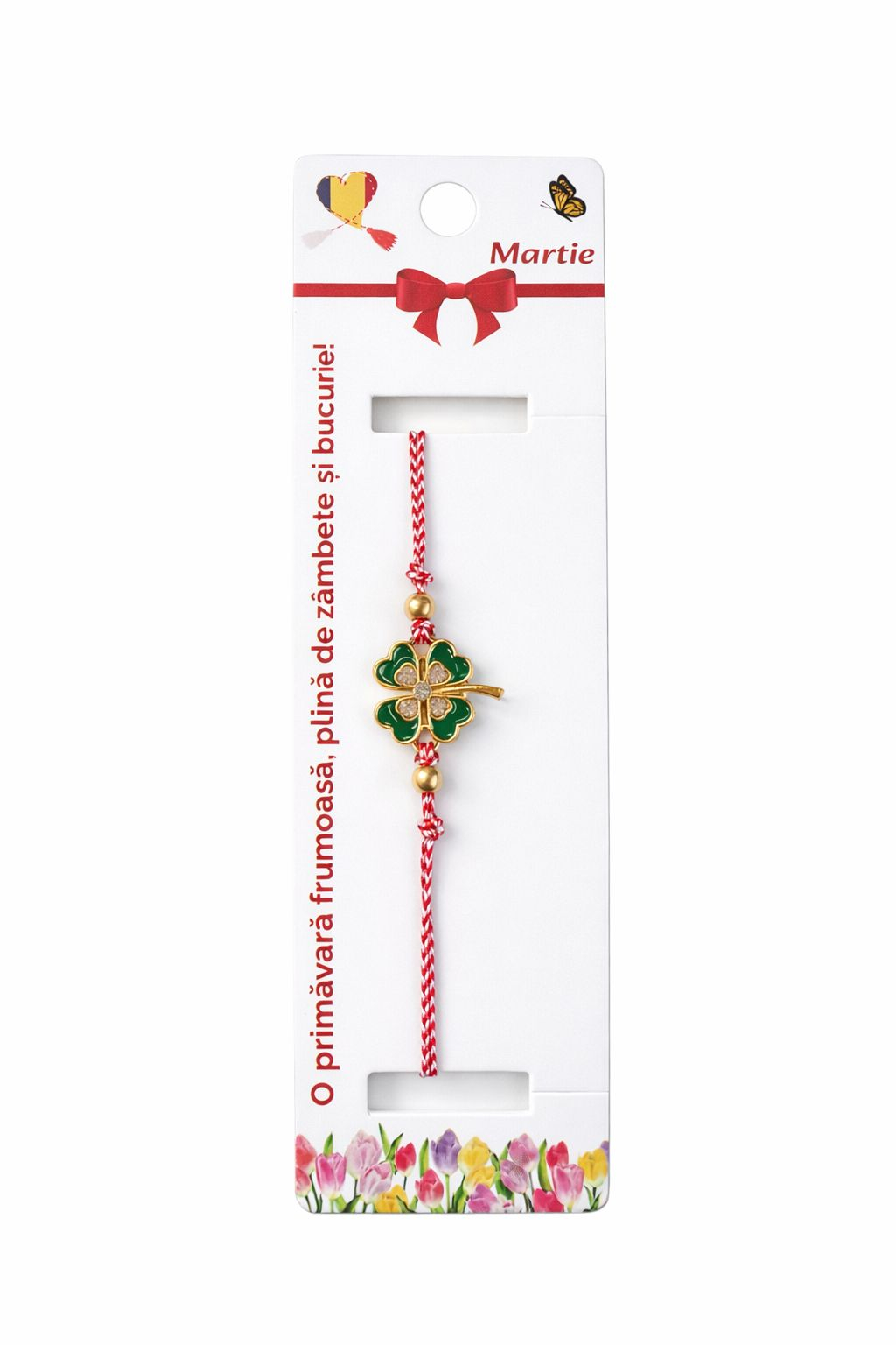 Ambalajul este conceput special pentru prezentare si oferire directa. Fiecare bratara este ambalata individual pe suport cartonat tematic, decorat cu elemente grafice de primavara, flori colorate si mesaj specific martisorului. Suportul este prevazut cu orificiu pentru agatare, fiind ideal pentru expunere in magazine, oferire in scoli, gradinite, birouri sau ca martisor corporate, fara a necesita reambalare suplimentara.