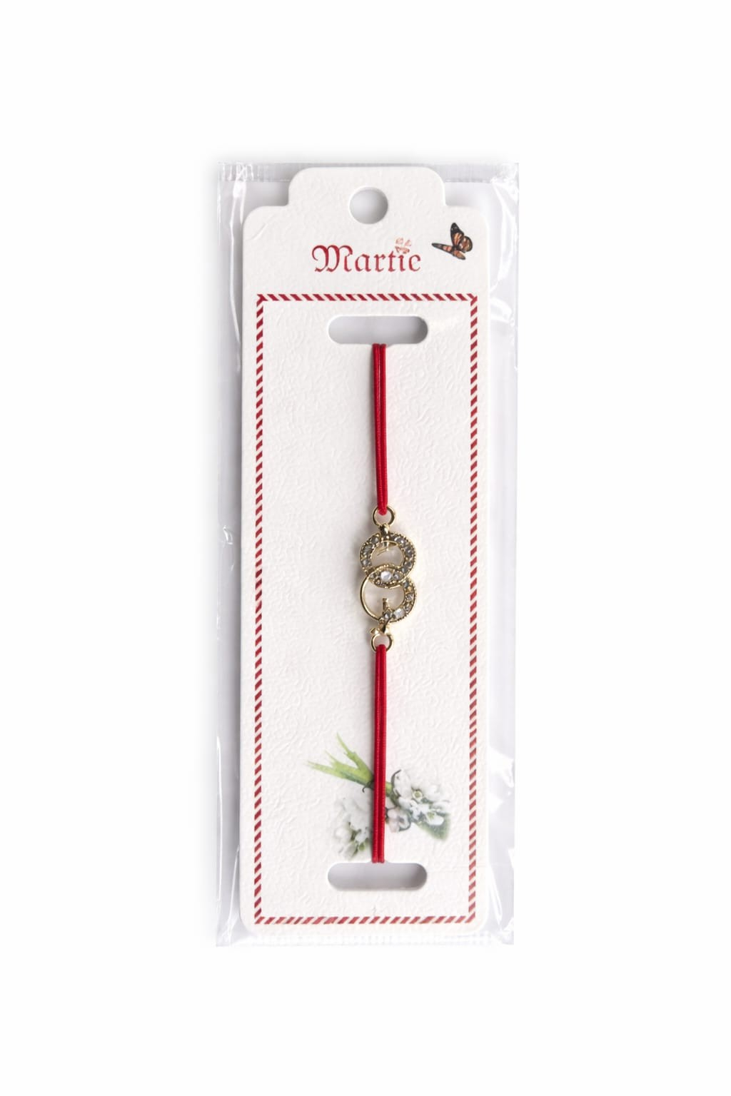Set de 24 bratari martisor cu snur rosu si charm metalic cercuri aurii împletite, unul decorat cu pietricele, ambalate individual pe cartonase 12x3 cm cu ilustratie fluture si decor floral. Simbolul cercurilor reprezinta unitatea, continuitatea si legatura emotionala, fiind un cadou ideal pentru 1 martie. Bratarile sunt reglabile, potrivite pentru copii si adulti, perfecte pentru familie, scoala sau birou. Un martisor handmade cu eleganta subtila — cadou primavara cu semnificatie.