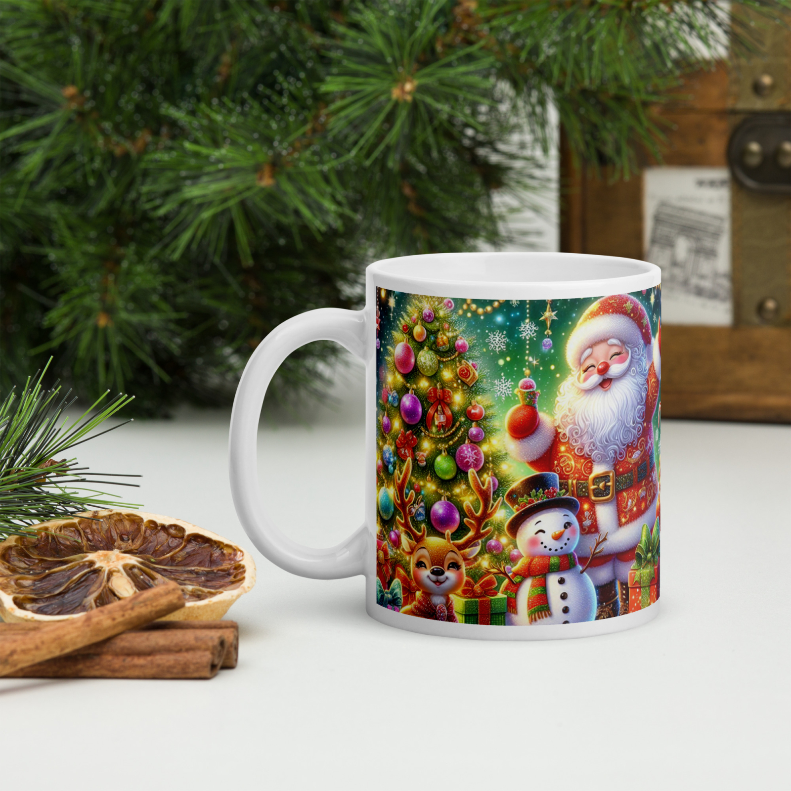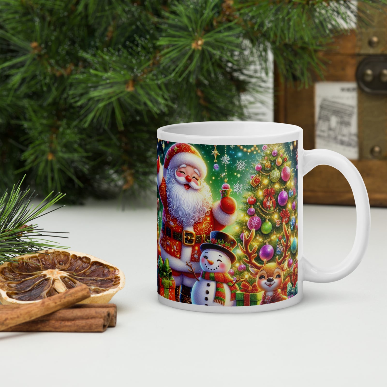 Cana din ceramică de 11 oz / 330 ml aduce o notă festivă oricărei pauze de cafea. Finisajul lucios, marginea confortabilă și mânerul ergonomic asigură o experiență plăcută de utilizare în sezonul rece.