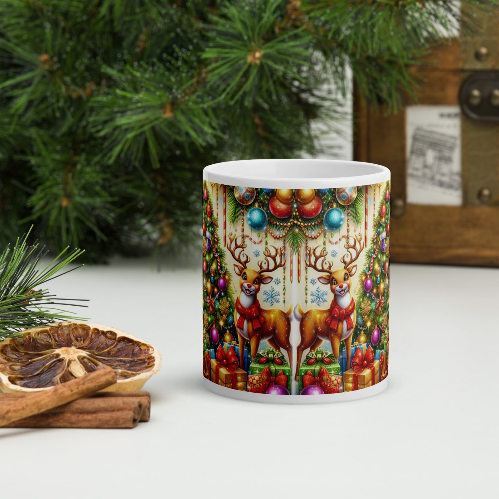 Cana din ceramică de 11 oz / 330 ml aduce o notă festivă oricărei pauze de cafea. Finisajul lucios, marginea confortabilă și mânerul ergonomic asigură o experiență plăcută de utilizare în sezonul rece.