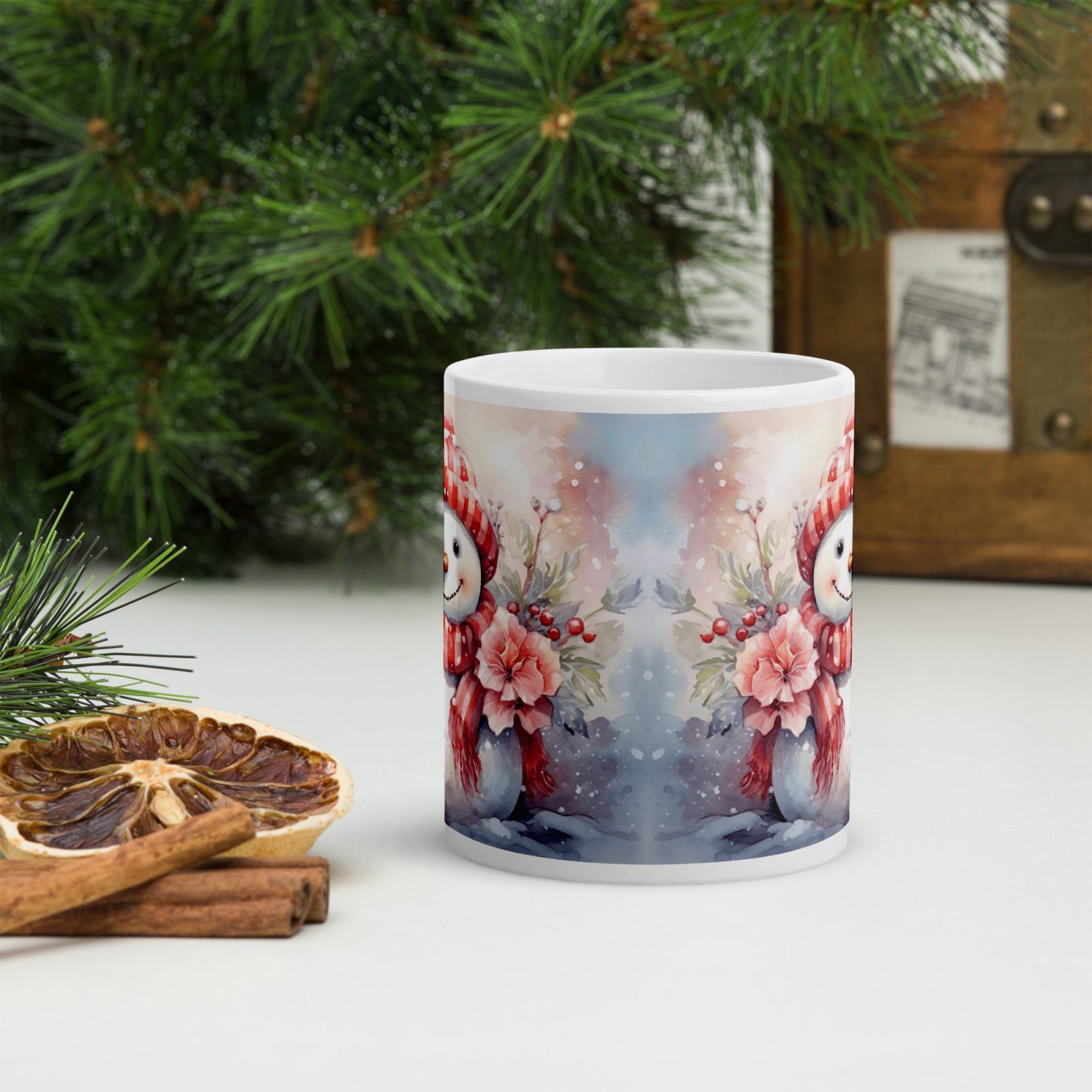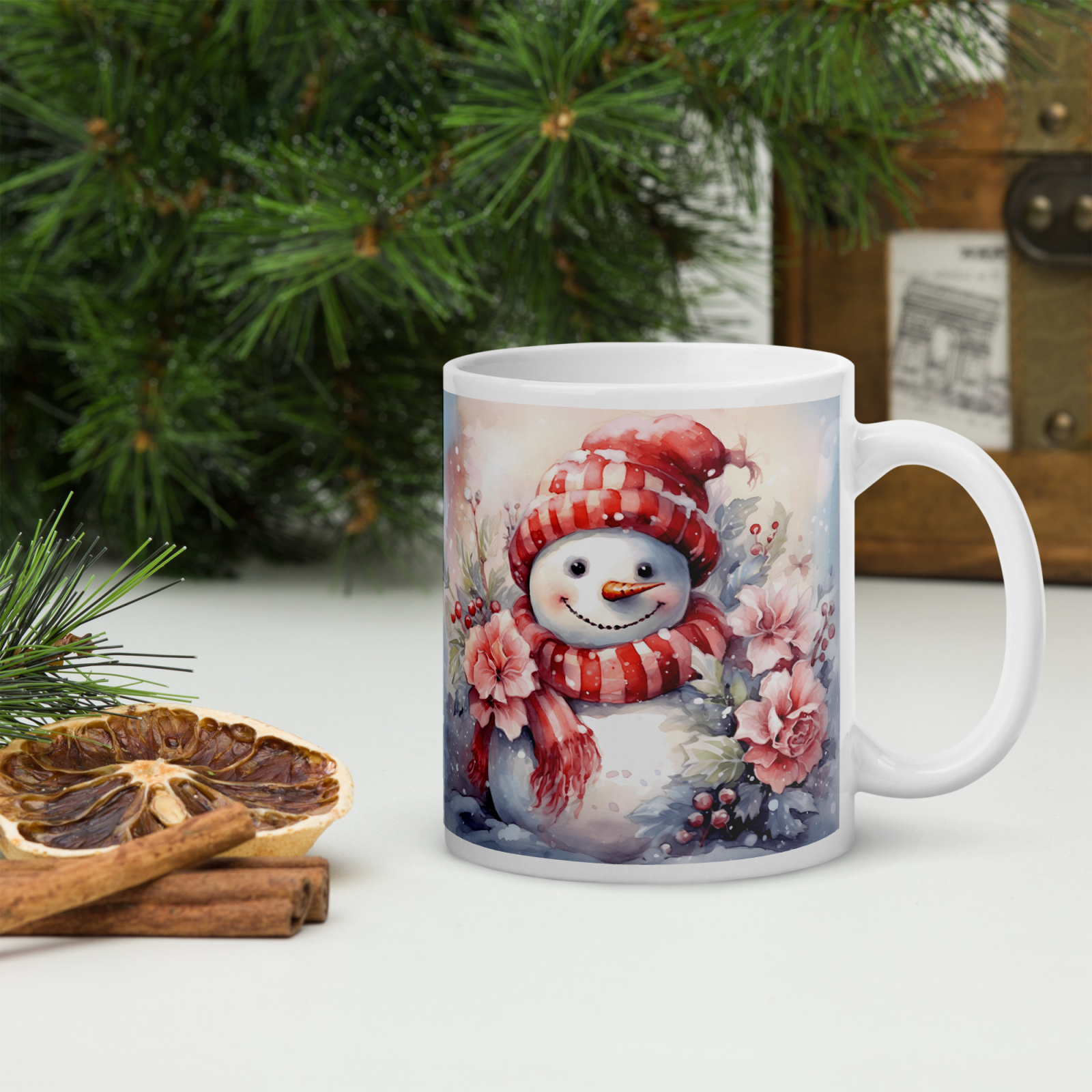 Cana din ceramică de 11 oz / 330 ml aduce o notă festivă oricărei pauze de cafea. Finisajul lucios, marginea confortabilă și mânerul ergonomic asigură o experiență plăcută de utilizare în sezonul rece.