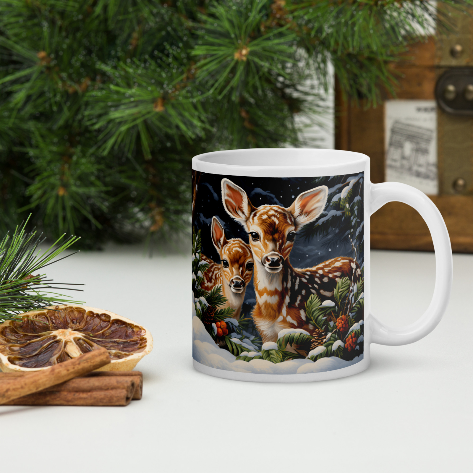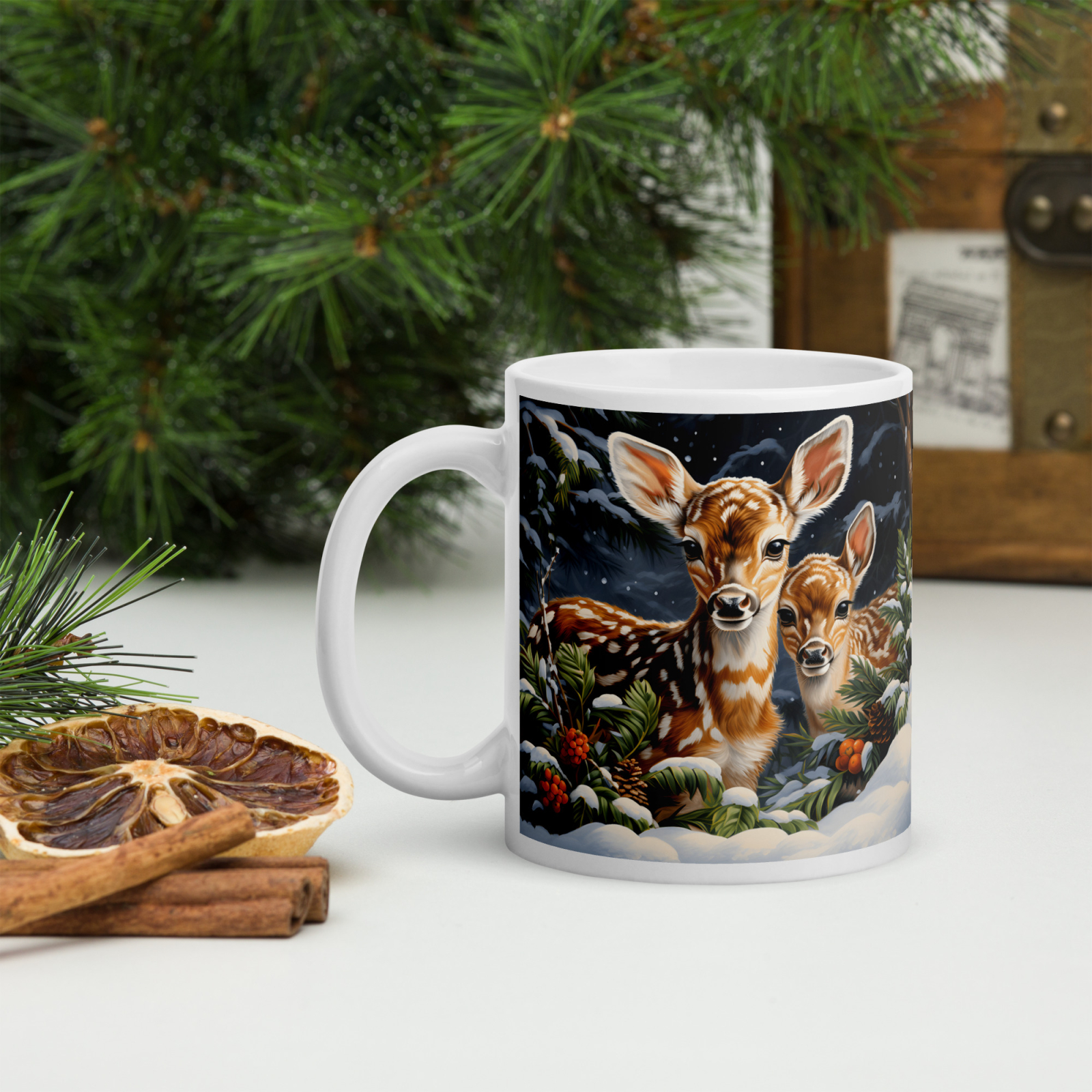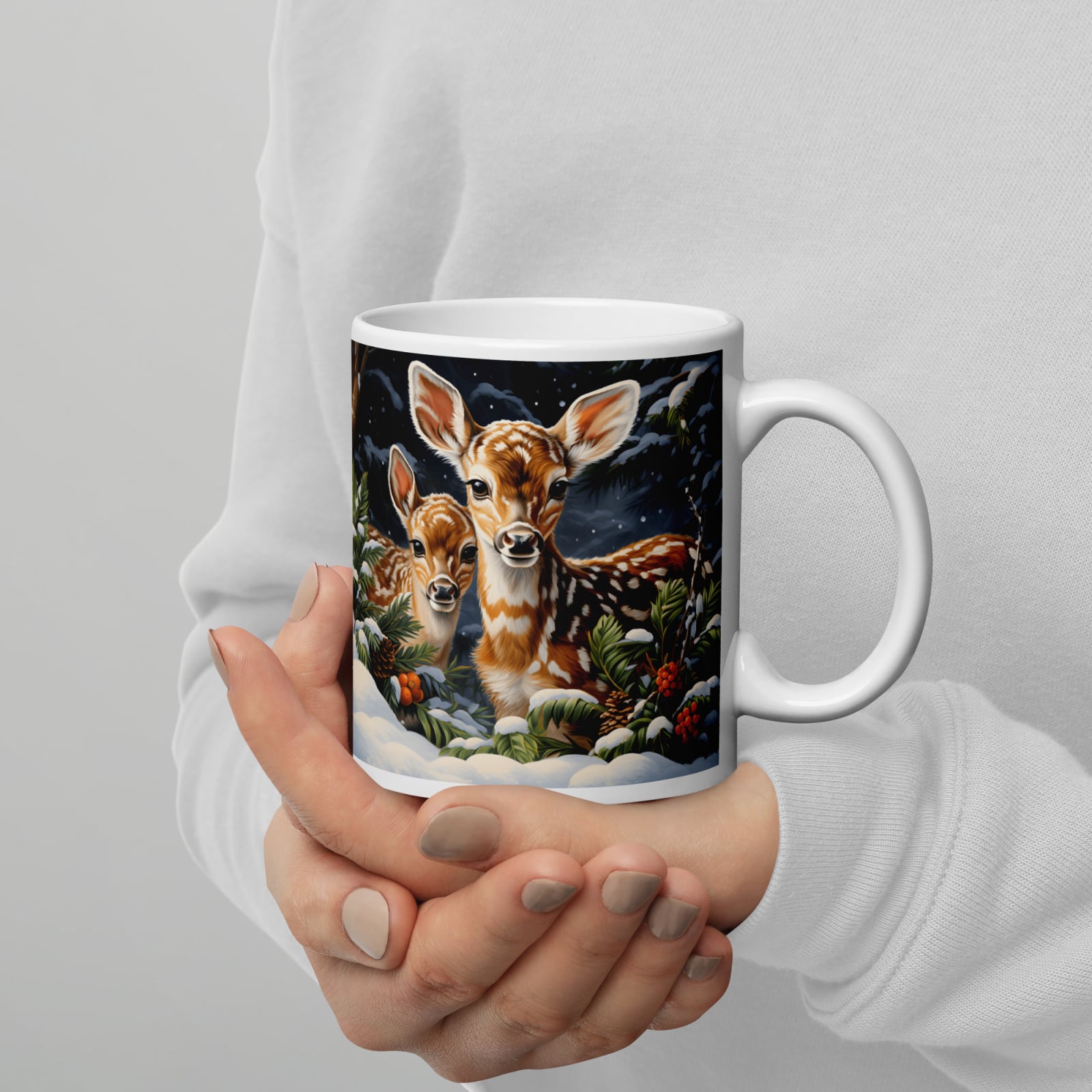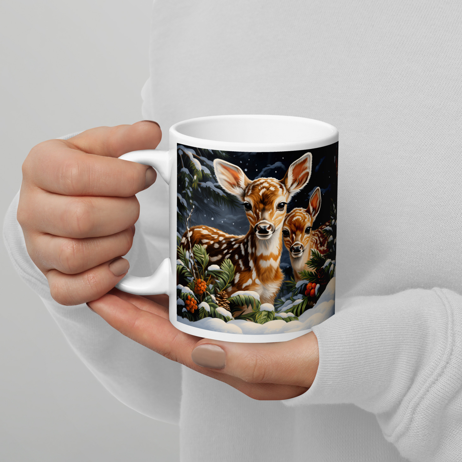 Cana din ceramică de 11 oz / 330 ml aduce o notă festivă oricărei pauze de cafea. Finisajul lucios, marginea confortabilă și mânerul ergonomic asigură o experiență plăcută de utilizare în sezonul rece.