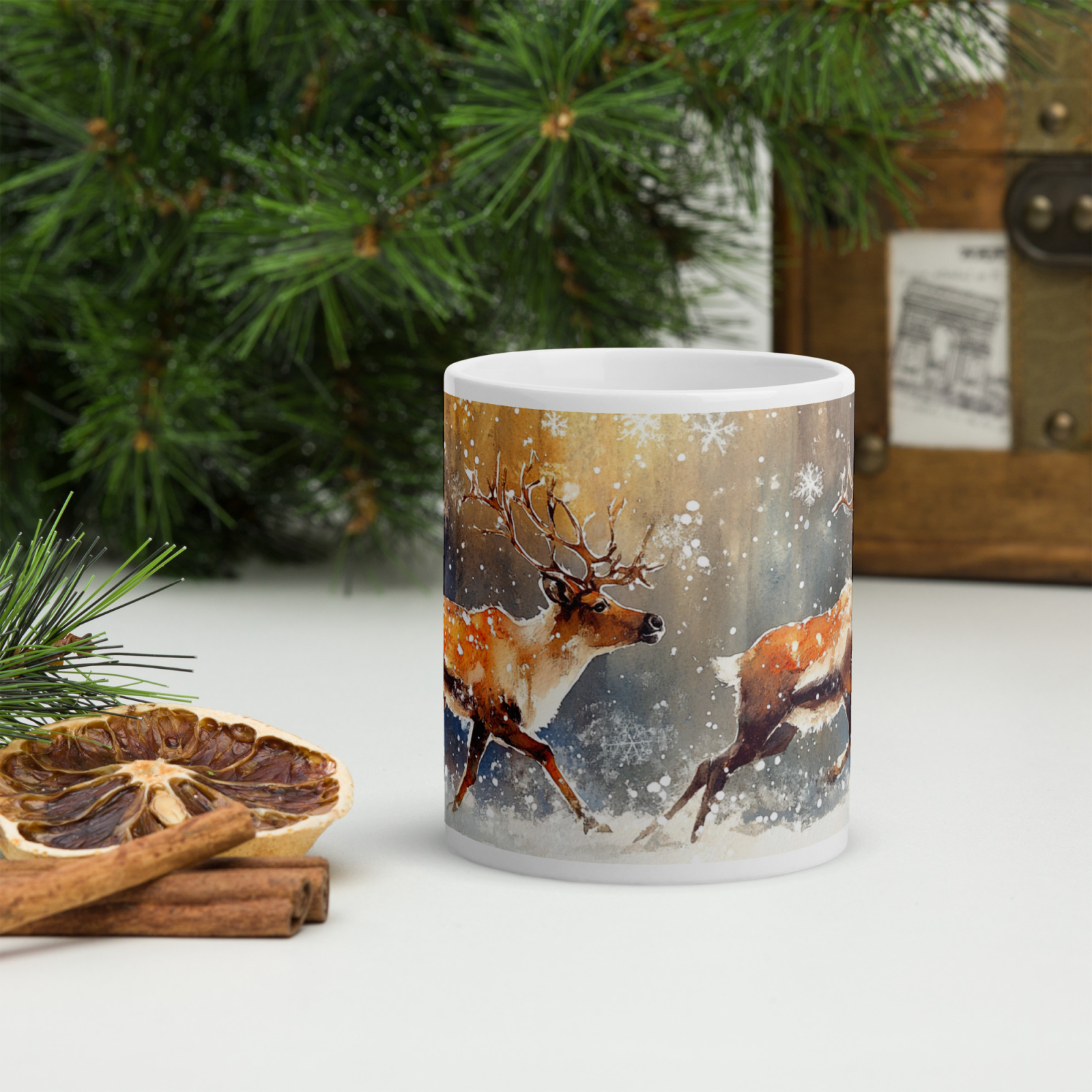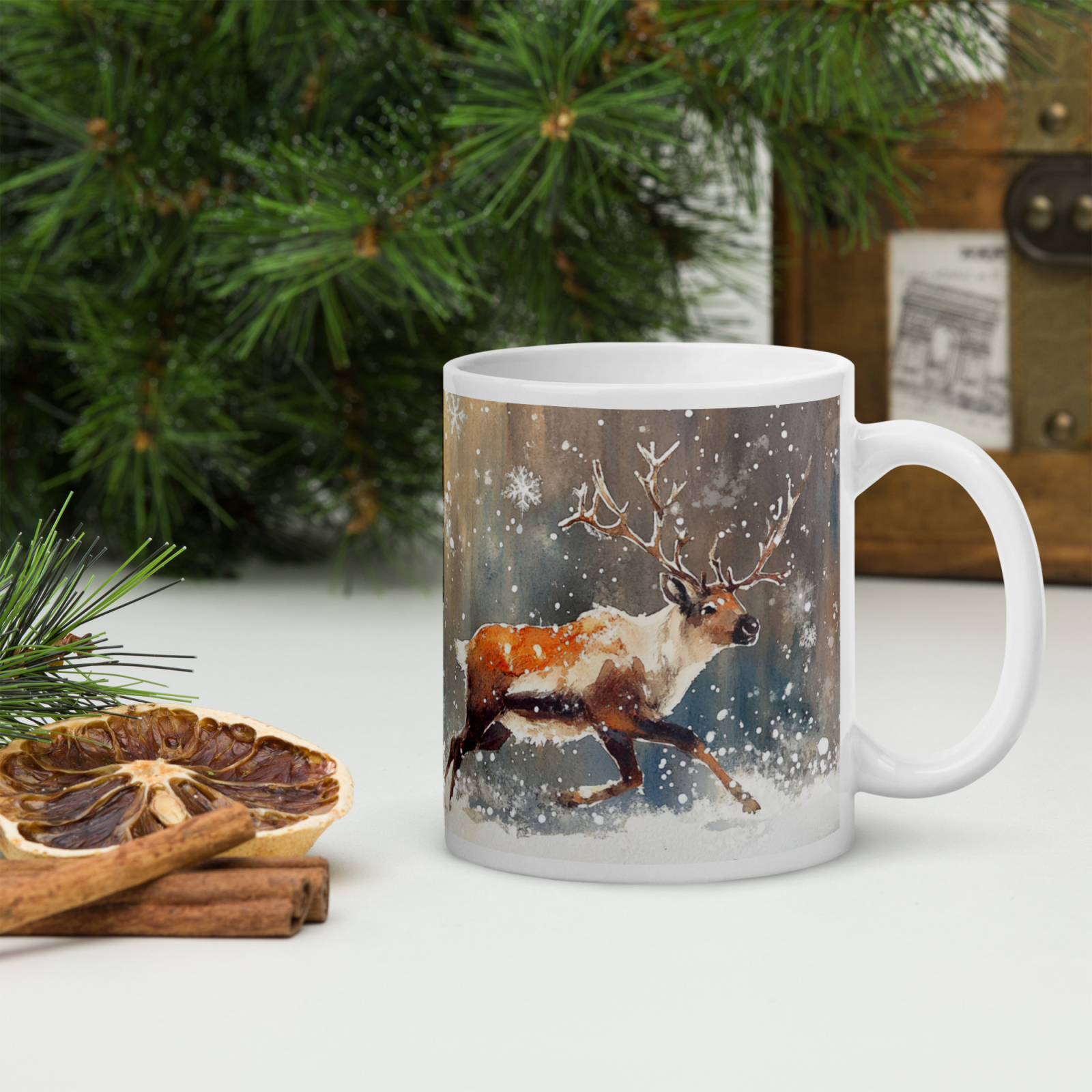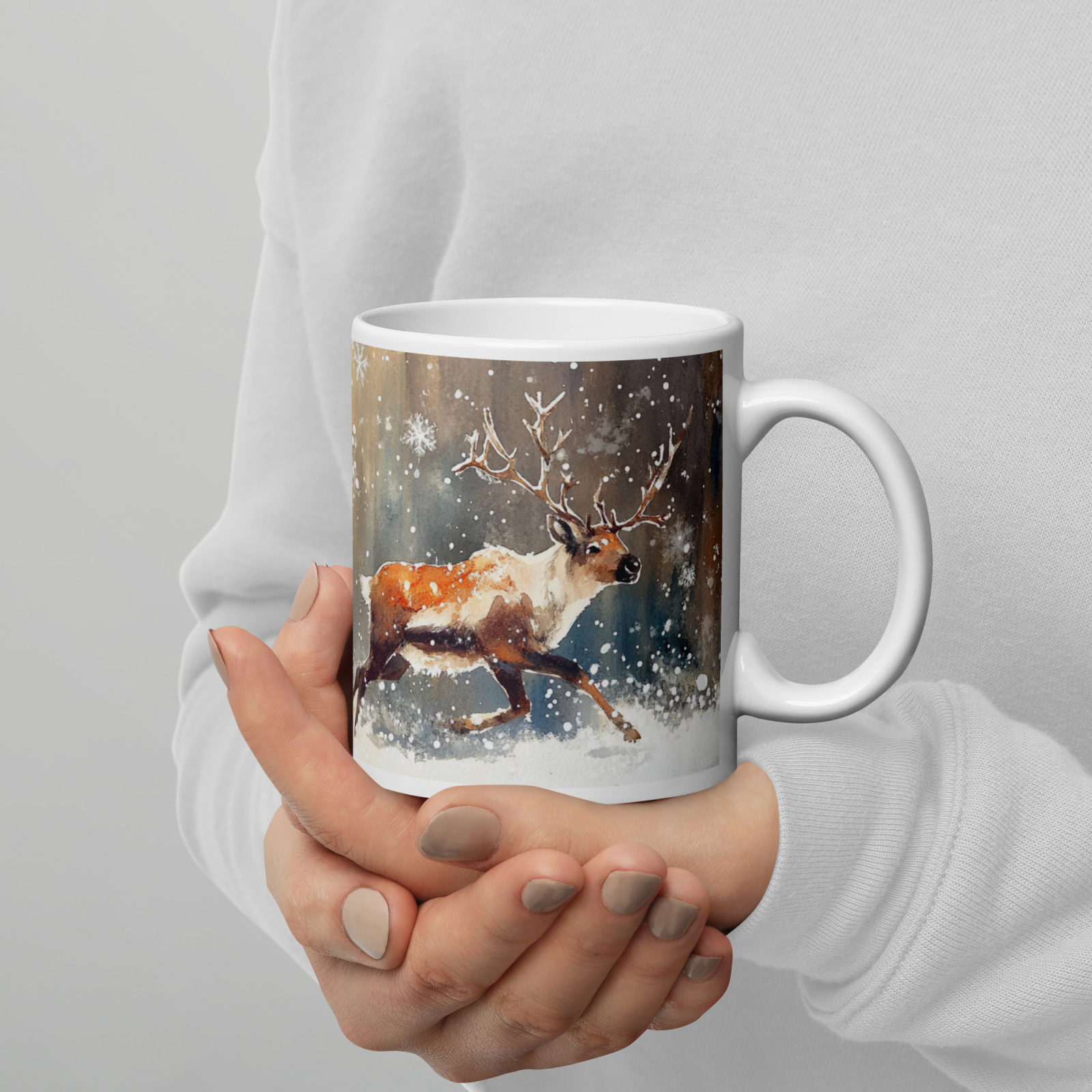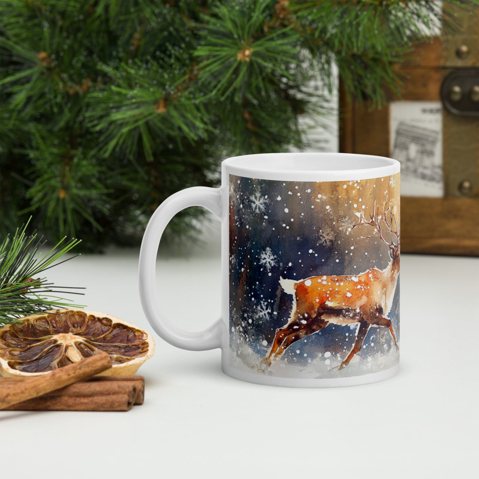 Cana din ceramică de 11 oz / 330 ml aduce o notă festivă oricărei pauze de cafea. Finisajul lucios, marginea confortabilă și mânerul ergonomic asigură o experiență plăcută de utilizare în sezonul rece.