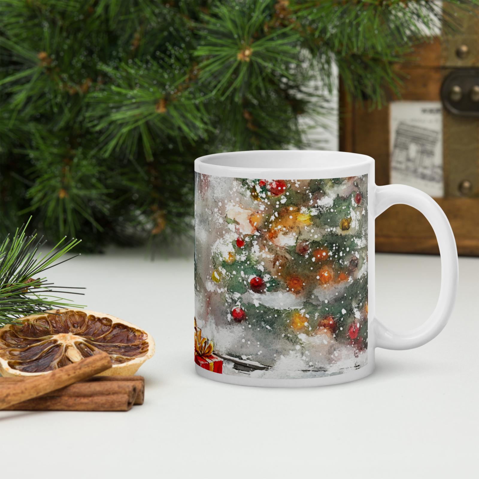 Cana din ceramică de 11 oz / 330 ml aduce o notă festivă oricărei pauze de cafea. Finisajul lucios, marginea confortabilă și mânerul ergonomic asigură o experiență plăcută de utilizare în sezonul rece.