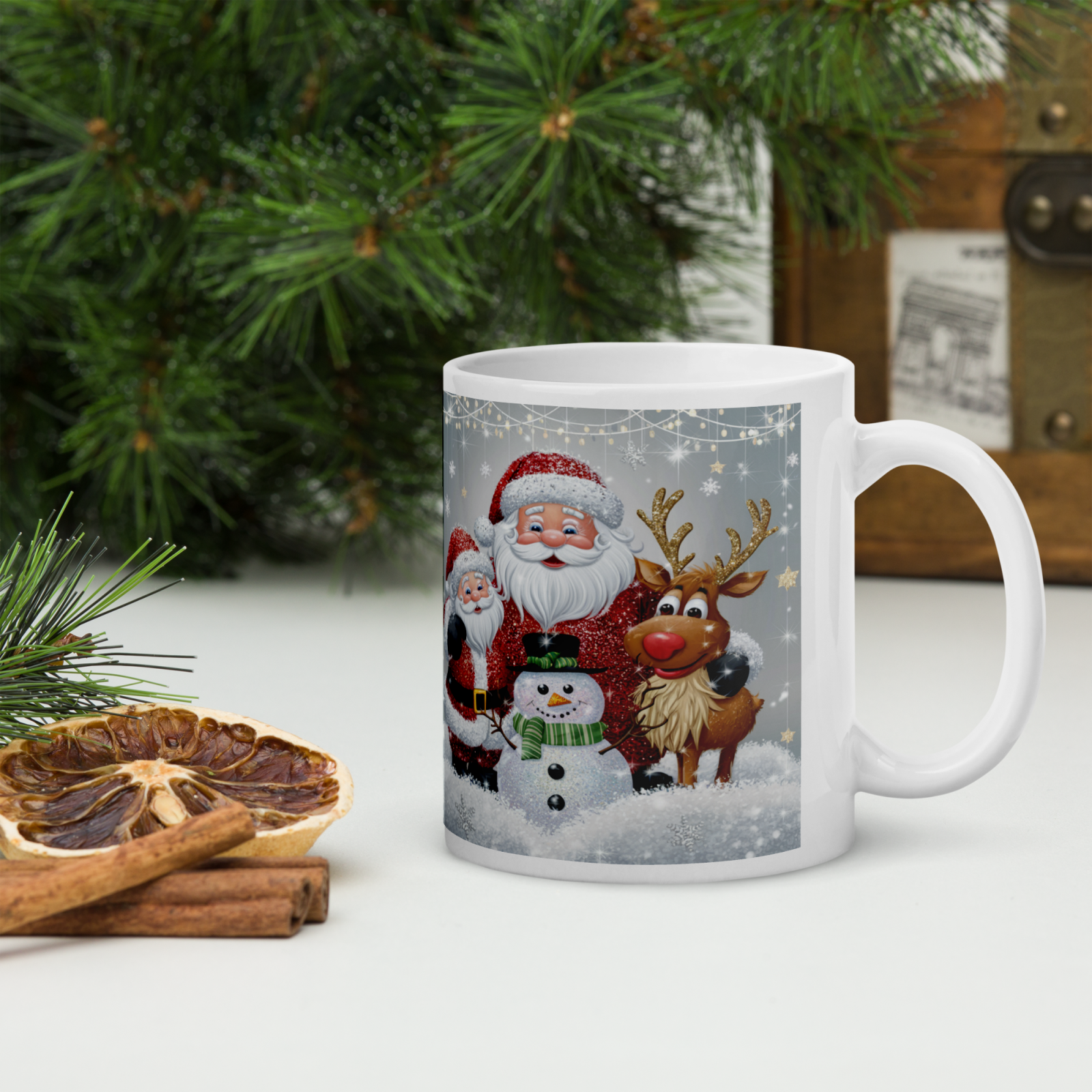 Cana din ceramică de 11 oz / 330 ml aduce o notă festivă oricărei pauze de cafea. Finisajul lucios, marginea confortabilă și mânerul ergonomic asigură o experiență plăcută de utilizare în sezonul rece.