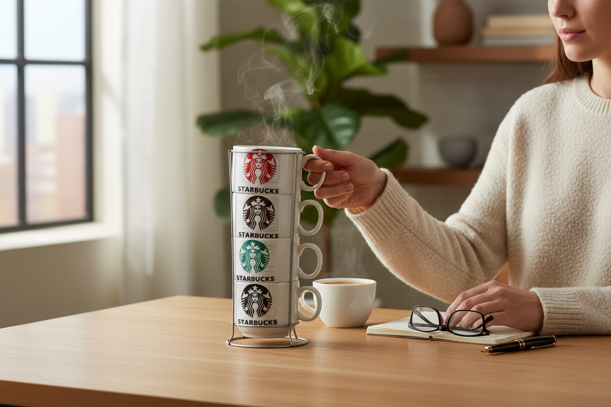 Acest set de 4 cani ceramice cu suport metalic este alegerea perfectă pentru oricine isi doreste o bucatarie moderna, ordonata si plina de culoare. Fiecare cana are un model diferit, in nuante vibrante, oferind un aspect unic si atragator. Sunt ideale pentru cafea, ceai, cappuccino sau orice bautura calda preferata.