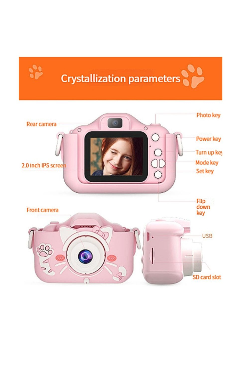 Camera foto digitala pentru copii, model pisicuta albastru, este un gadget atractiv si sigur, potrivit pentru micii exploratori. Carcasa din silicon moale cu design 3D de pisicuta ofera protectie sporita si un aspect adorabil.