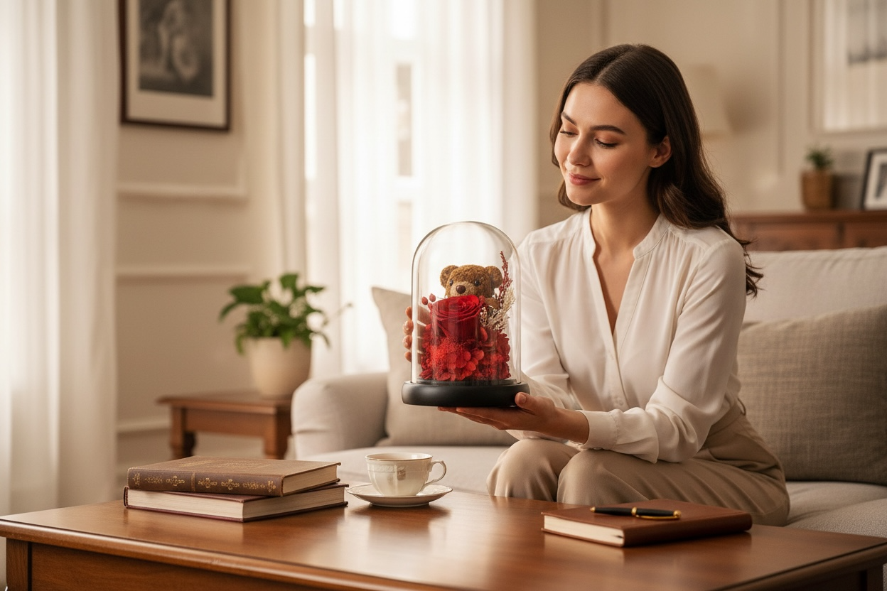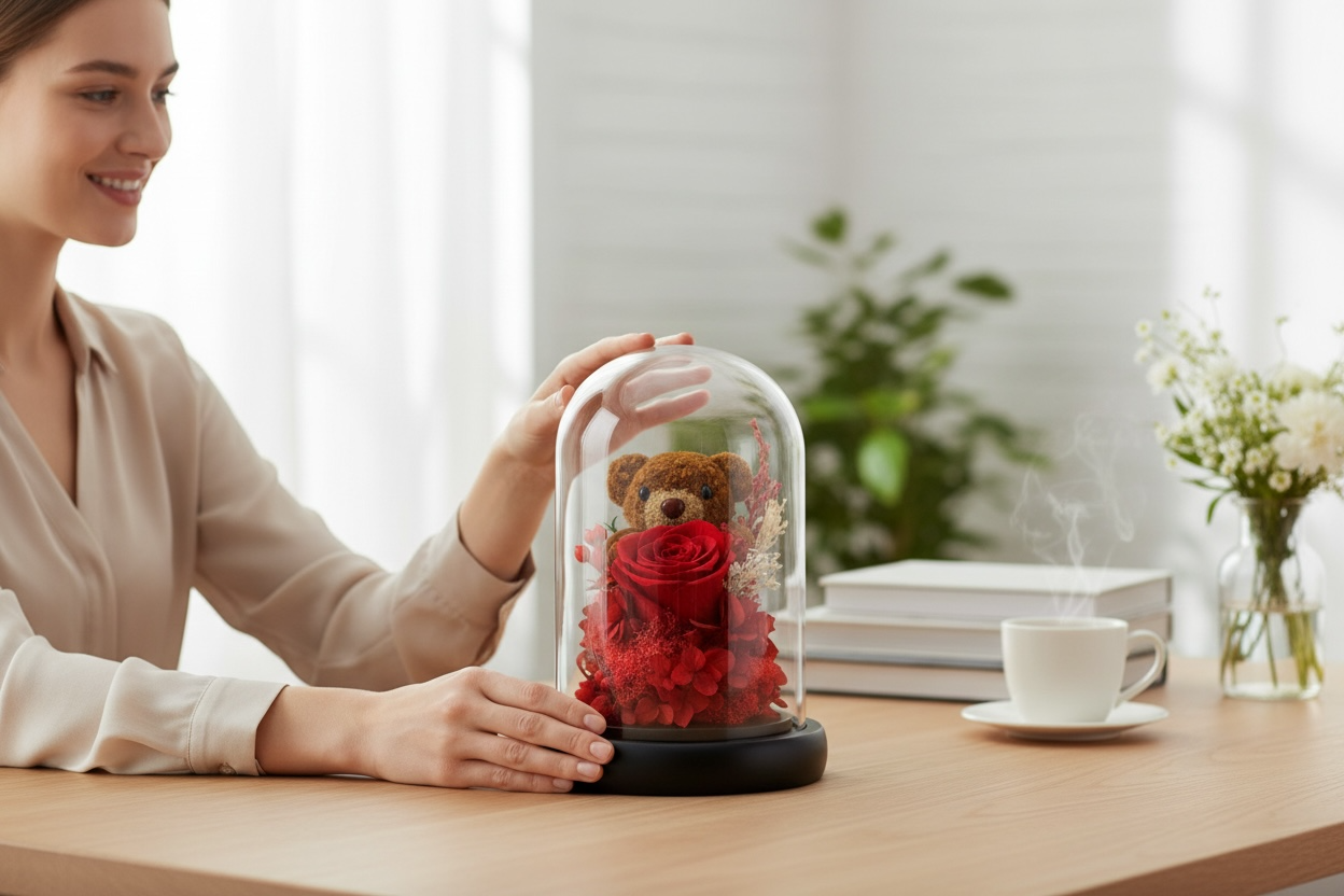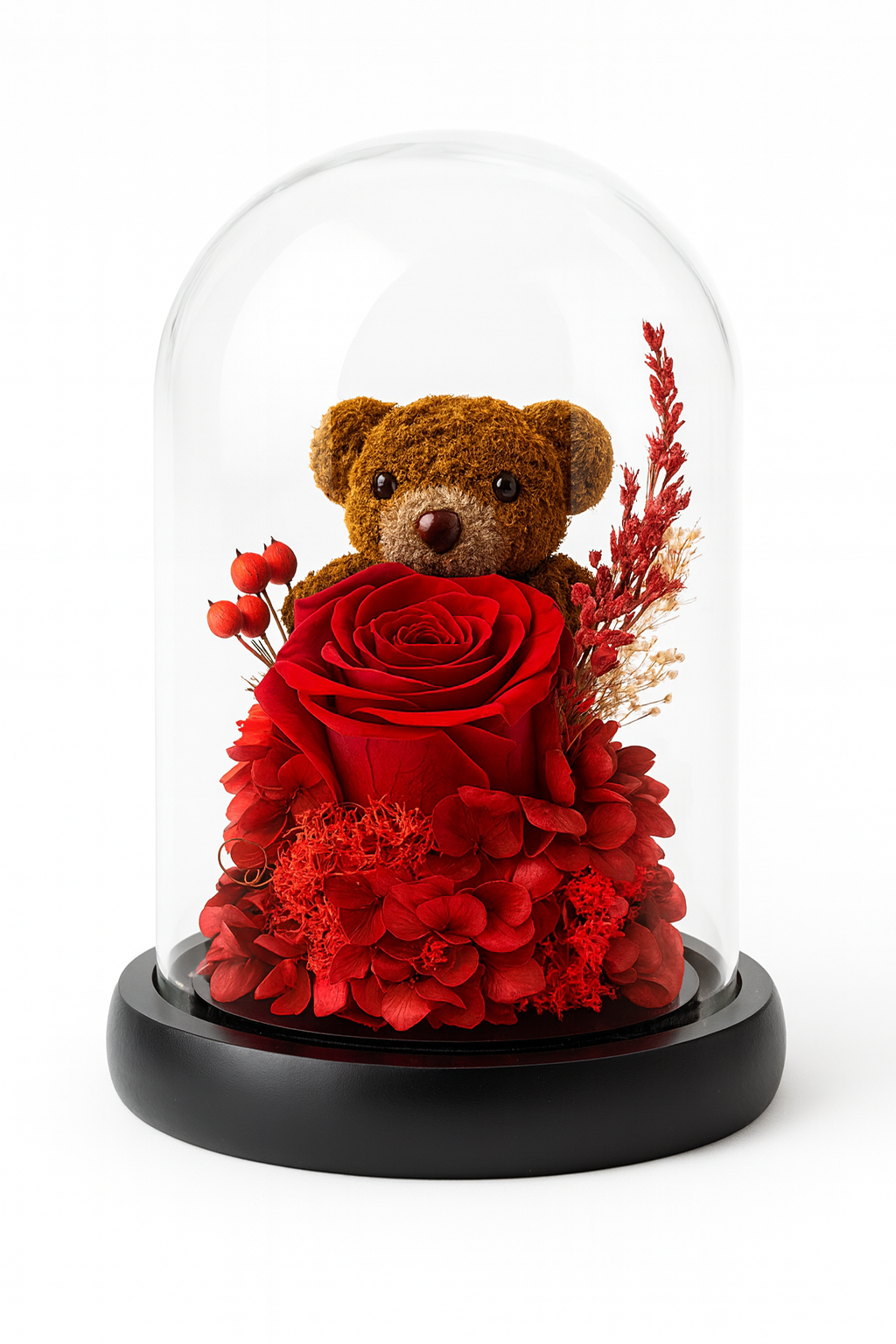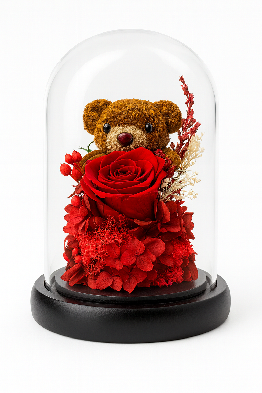 Ofera un cadou romantic, elegant si memorabil cu acest trandafir criogenat rosu, asezat sub o cupola din sticla ultra-clara si completat de o baza naturala din lemn. Cu un design rafinat si detalii realizate manual, aranjamentul devine un simbol al iubirii eterne, perfect pentru Valentines Day, Martisor, 8 Martie, aniversari, onomastici sau momente speciale.