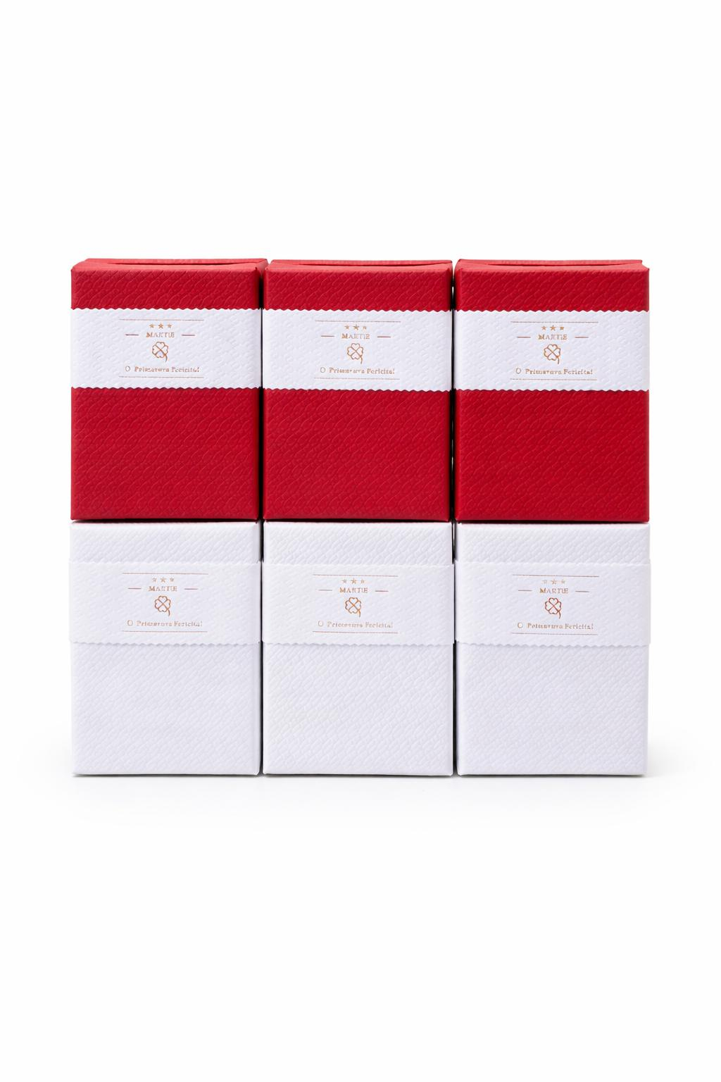 Impresioneaza prin detalii folosind aceasta cutie cadou pentru Martisor, text Martie, 8.5x6x3 cm, Alb/Rosu. Exteriorul texturat si banda decorativa cu motive aurii transforma orice mic gest intr-un cadou de neuitat.