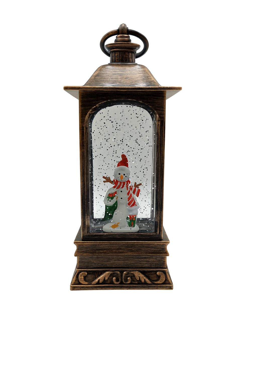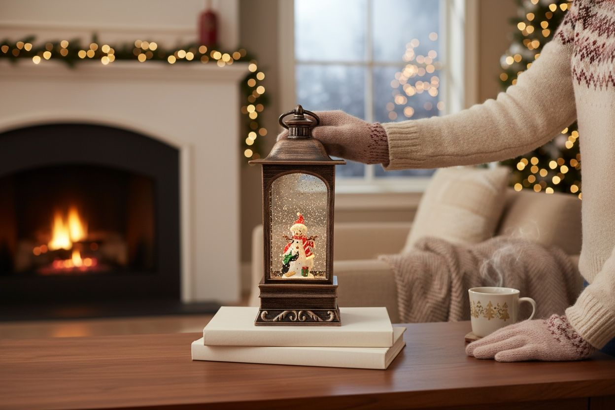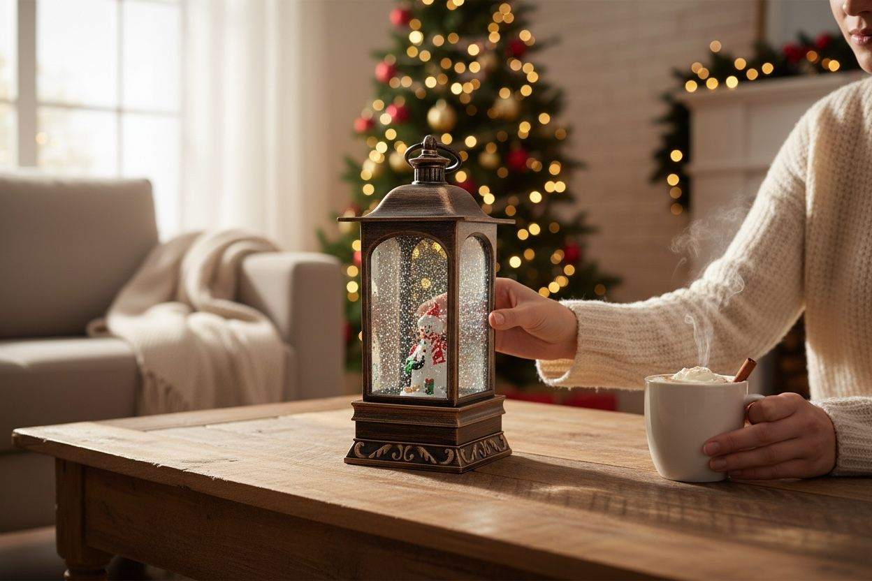 Adauga magie in decorul de sarbatori cu acest felinar decorativ de Craciun, prevazut cu lumini LED calde si functie muzicala cu colinde. Designul elegant in stil vintage include o scena festiva cu om de zapada, perfecta pentru a crea o atmosfera calda si vesela in orice incapere.