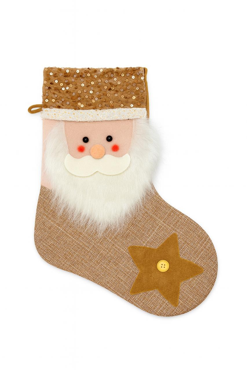 Adu spiritul sărbătorilor în casa ta cu această șosetă decorativă pentru cadourile de Moș Nicolae, realizată într-un design festiv și elegant, în nuanțe aurii. Disponibilă în trei modele simpatice – Ren, Moș Crăciun sau Om de Zăpadă – această șosetă este perfectă pentru a surprinde copiii și pentru a completa decorul de iarnă.