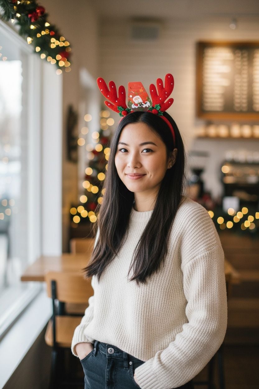 Adauga un plus de veselie tinutelor de sarbatori cu aceasta bentita de Craciun cu cornite, perfecta pentru petreceri, poze sau evenimente tematice. Cornitele sunt realizate din material moale, decorate cu elemente stralucitoare si pompoane festive, oferind un look amuzant si adorabil.