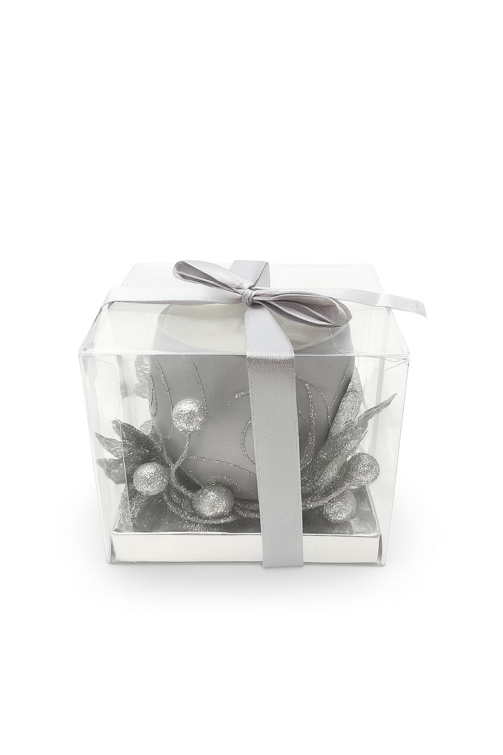 Decoratiune Craciun cu lumare argintie cadou – model elegant ambalat cu funda,