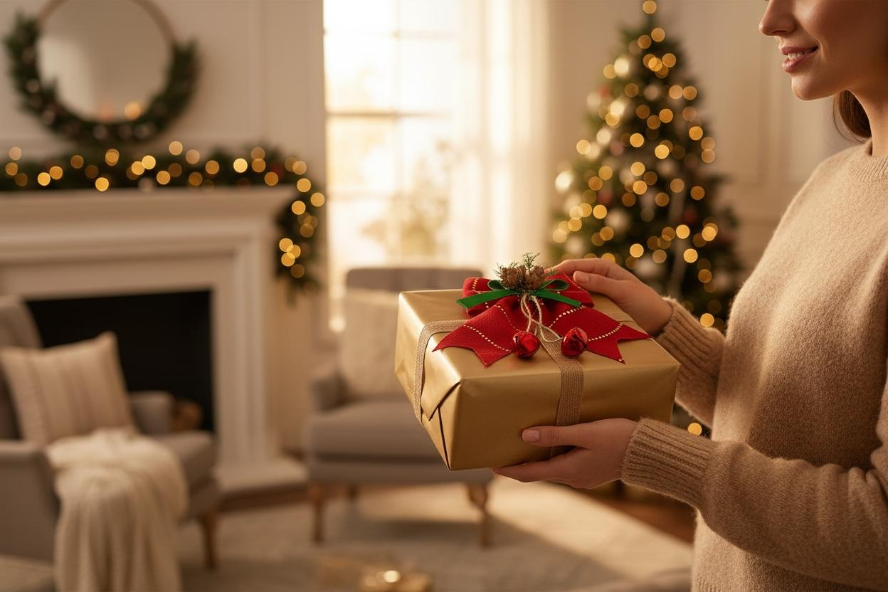 Adu un look clasic de iarna si o nota de eleganta in decorul tau festiv cu aceasta fundita voluminoasa de Craciun. Ornamentul combina o panglica textila imprimata in nuante de rosu si verde, cu crengute verzi artificiale, conuri naturale de brad si doi clopotei metalici rosii care adauga un sunet vesel si contrast cromatic.