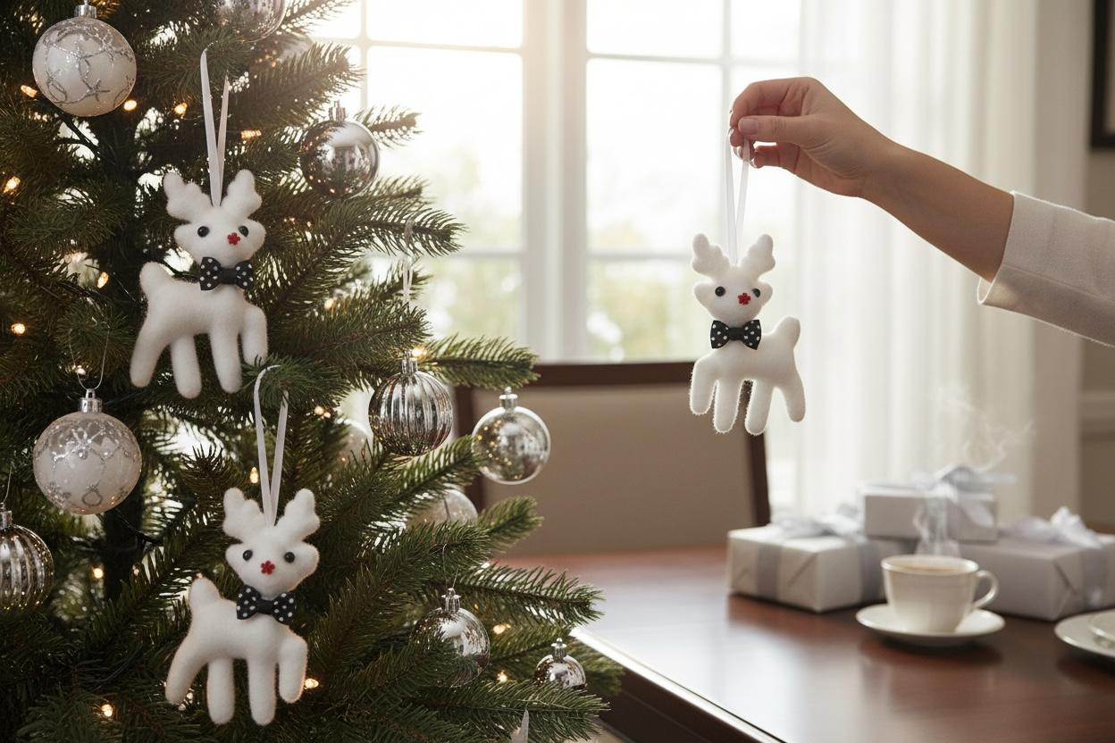 O alegere eleganta si jucausa pentru bradul tau de Craciun, aceste decoratiuni in forma de ren alb sunt ideale pentru a adauga un plus de farmec si stil sarbatorilor.