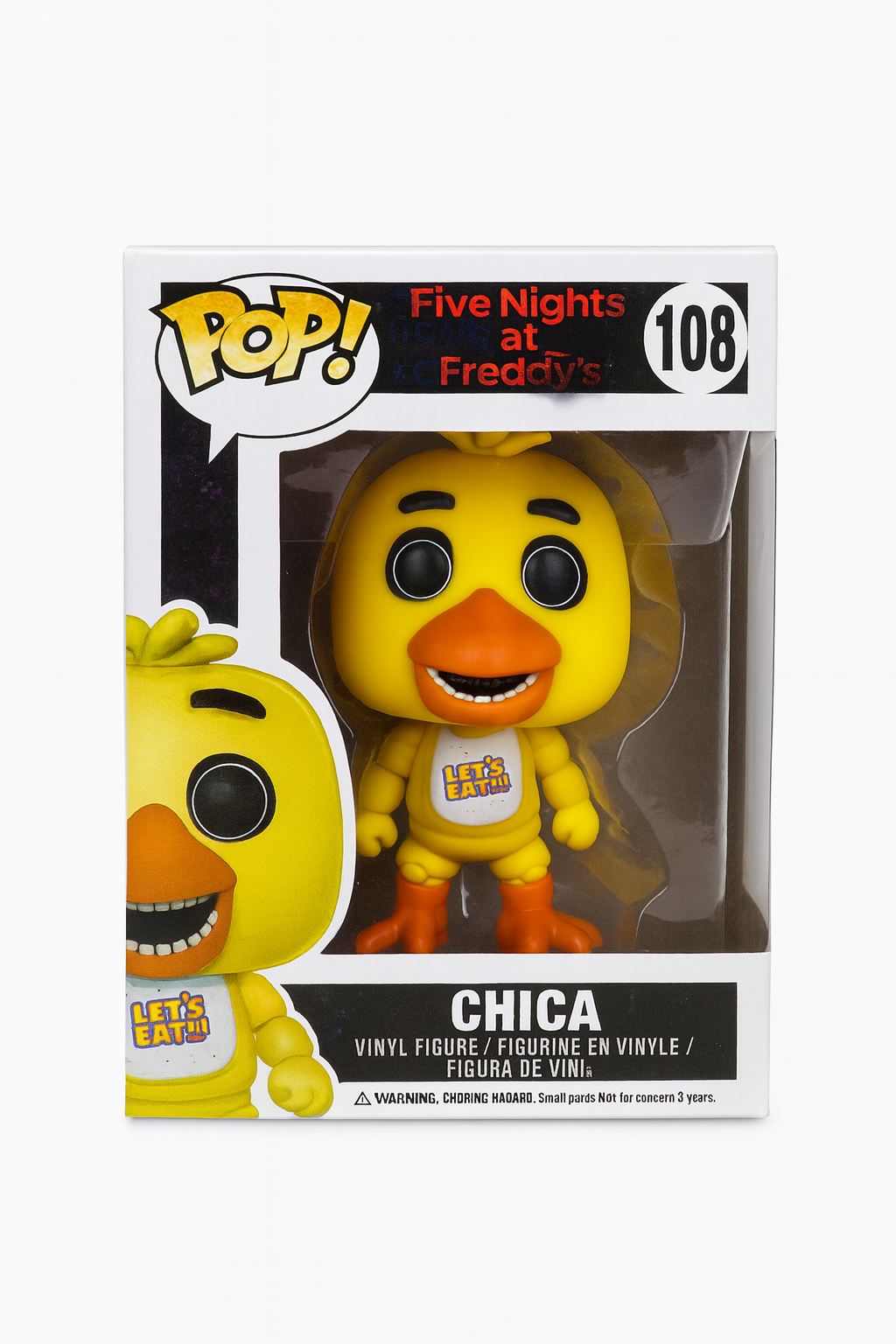Adauga un plus de mister colectiei tale cu figurina vinil Chica POP! 108 inspirata din universul Five Nights at Freddys. Realizata cu detalii atent lucrate, aceasta jucarie prezinta aspectul iconic al personajului, cu expresia sa energica si celebra baveta „Lets Eat!”. Figurina este perfect protejata in cutia sa de prezentare, ceea ce o face ideală atat pentru expunere, cat si pentru colectionari pasionati. Fabricata din materiale rezistente, Chica este potrivita pentru copii peste 3 ani si pentru fanii care vor sa recreeze atmosfera jocului sau sa isi largeasca setul de personaje. Perfecta pentru cadou sau pentru colectia personala.
