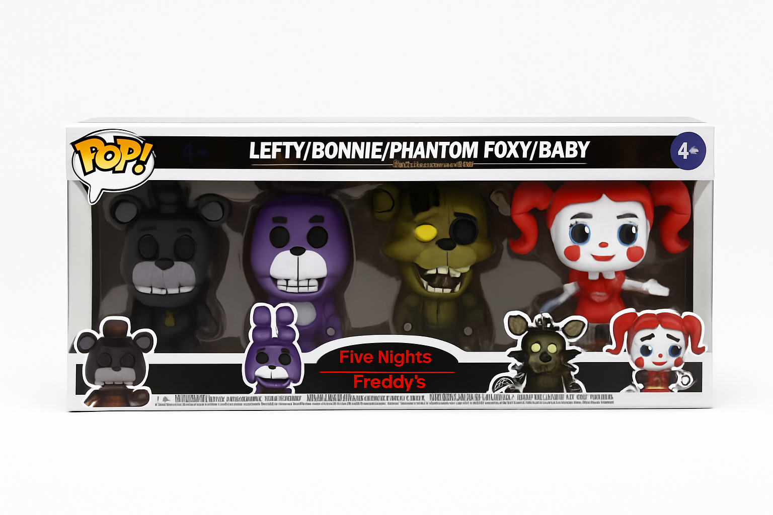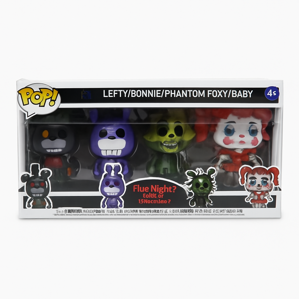 Transforma orice raft sau birou intr-o sceneta plina de mister cu acest set de figurine inspirate de universul horror Five Nights. Pachetul include patru personaje emblematice reinterpretate intr-un stil adorabil, dar totodatusi creepy, perfecte pentru fani, colectionari sau cadouri tematice. Fiecare figurina este realizata din material rezistent, cu detalii expresive care surprind perfect personalitatea fiecarui personaj.