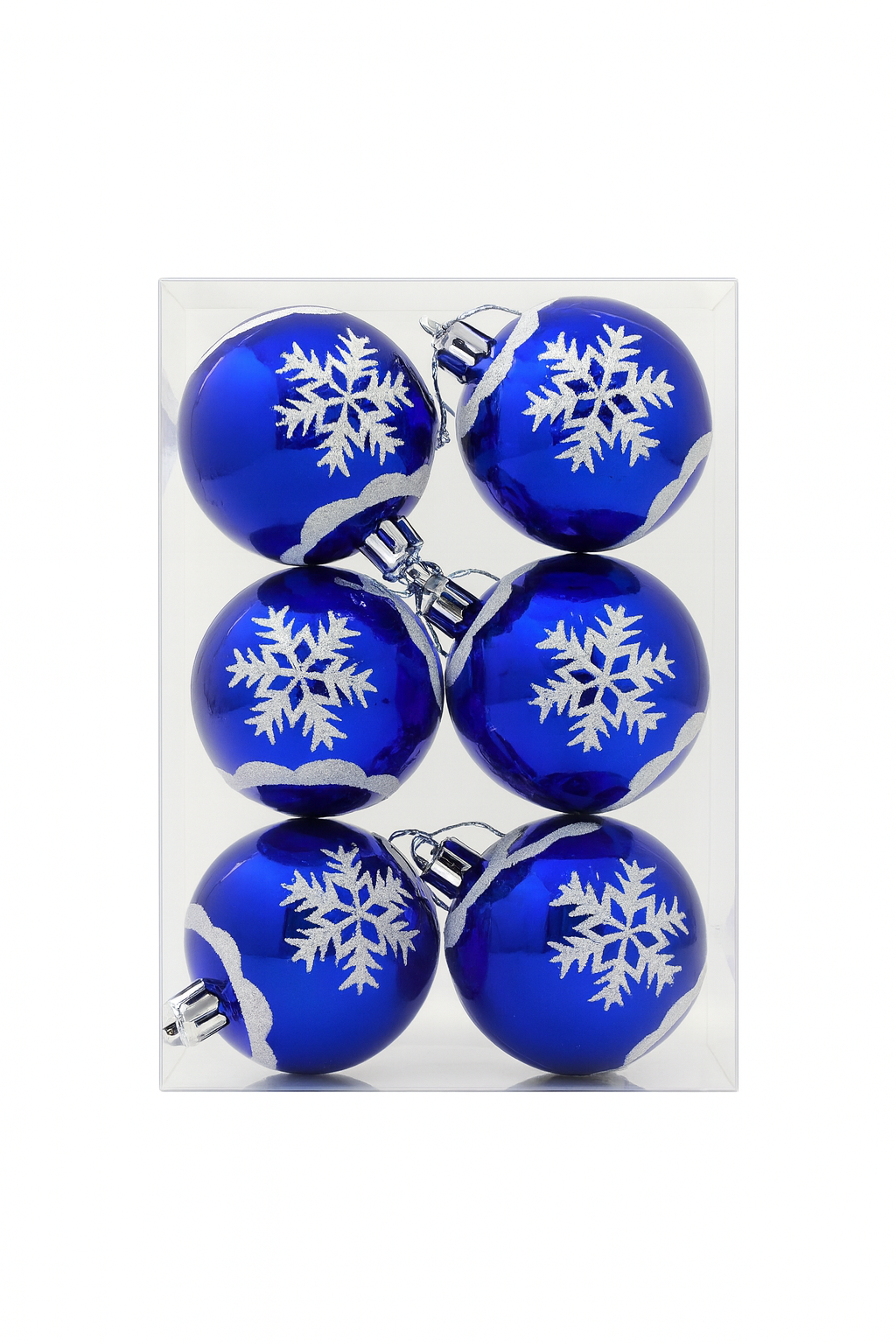 Set 6 Globuri Craciun Albastre 6 cm cu Fulgi Argintii, Ornament Brad