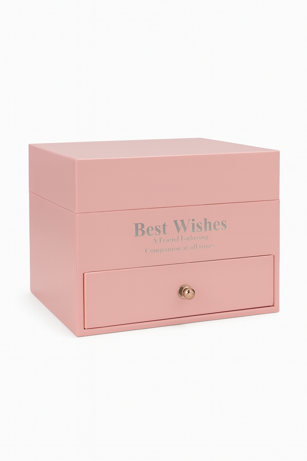 Cutie: Premium, culoare roz, cu capac si sertar glisant