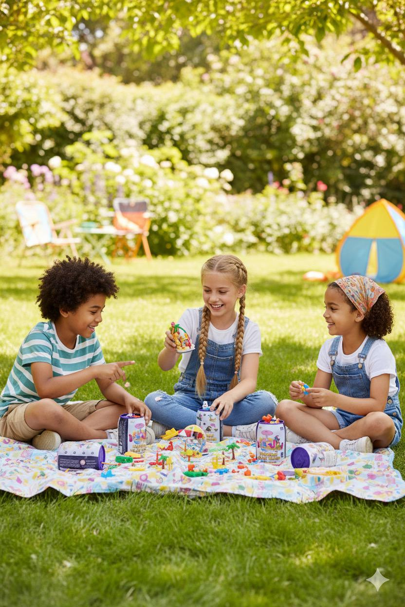- Include mini figurine si accesorii tematice (palmieri, umbrele, sezlonguri etc.)