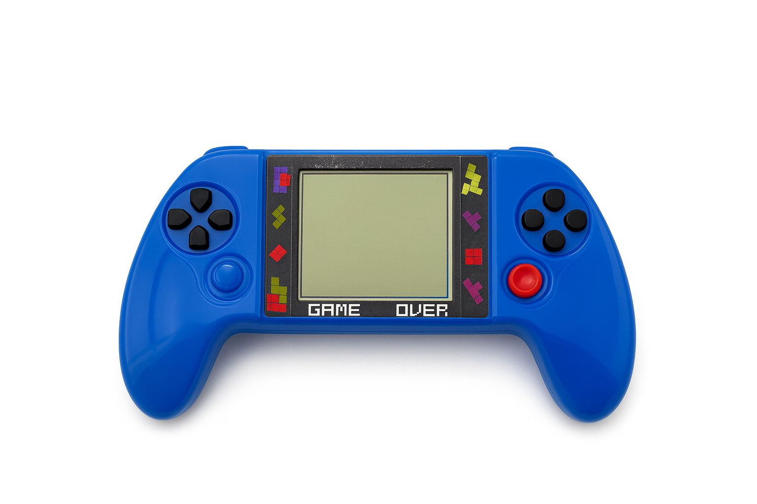Consola portabila Tetris Game Mini, culoare albastru, ideala pentru copii si pasionatii de jocuri retro. Dispune de un ecran generos si butoane ergonomice, oferind o experienta de joc confortabila si intuitiva.