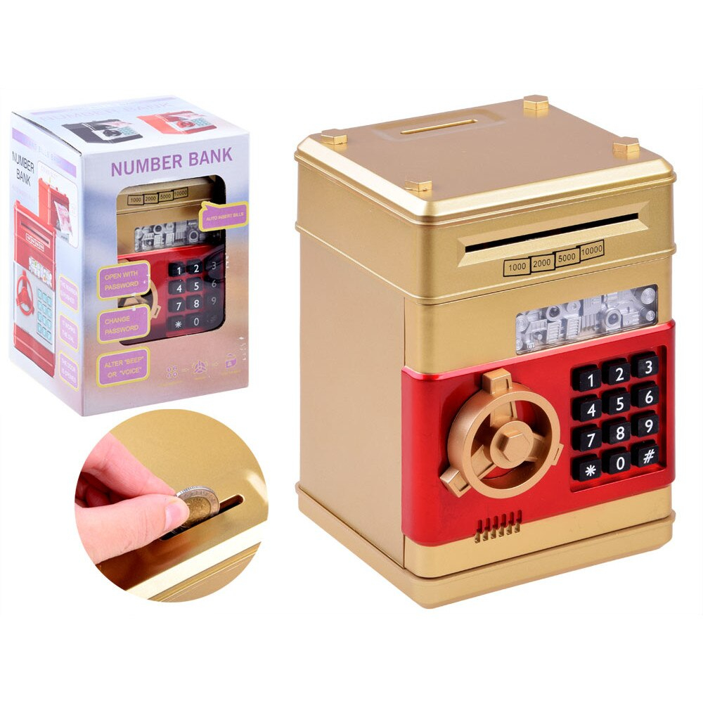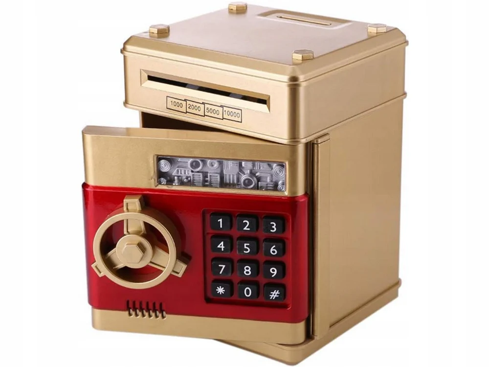 Transforma economisirea intr-o joaca distractiva cu acest seif electronic pentru copii, realizat in culori premium auriu-rosu si prevazut cu tastatura functionala. Pusculita permite introducerea monedelor si bancnotelor si se deschide doar cu parola, exact ca un mini seif adevarat.