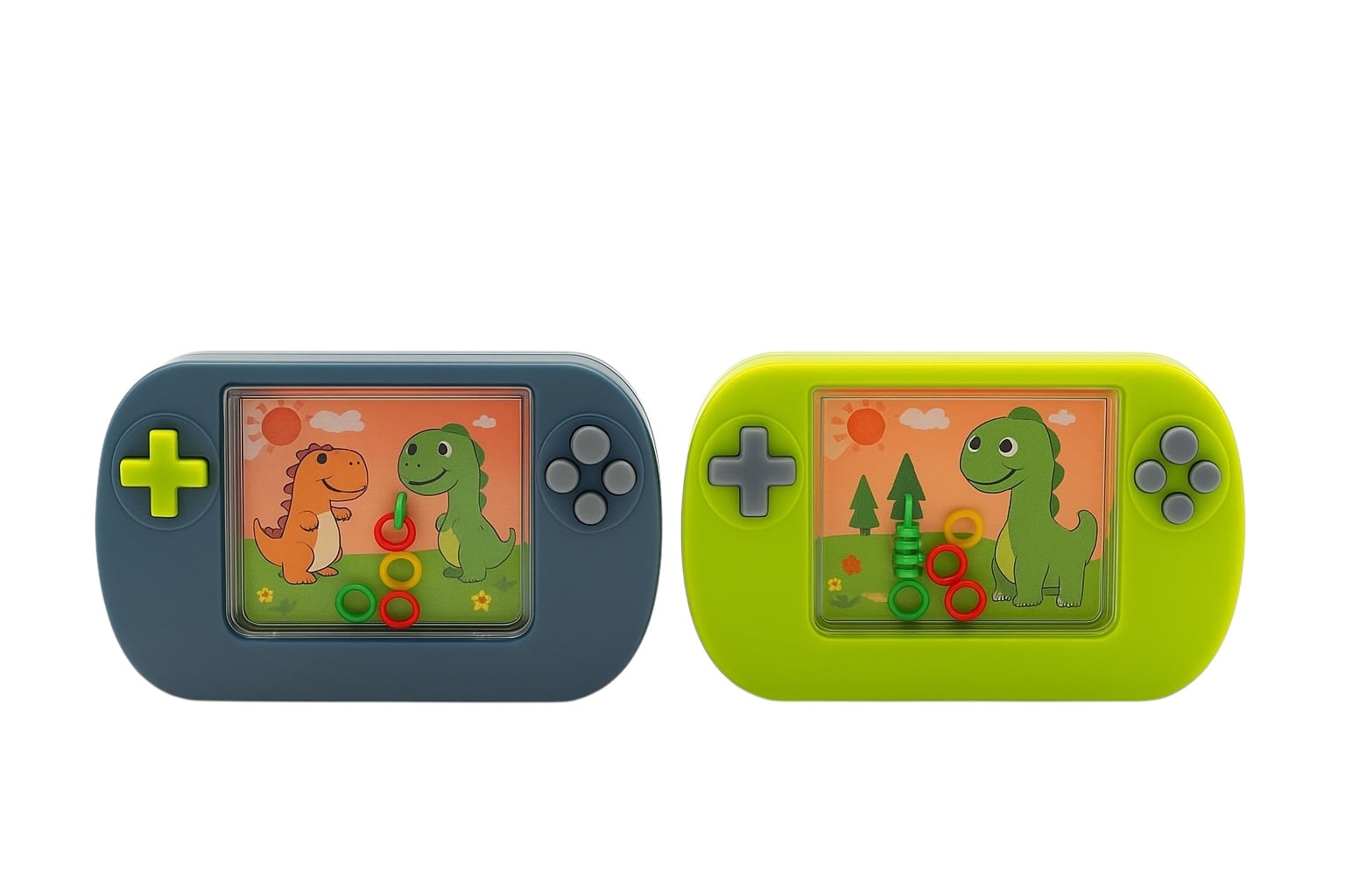 Designul cu dinozauri simpatici, culorile vii si forma compacta fac acest joc ideal pentru cei mici. Consolele sunt fabricate din plastic rezistent, sigur pentru copii, avand margini rotunjite si o greutate usoara, perfecta pentru deplasari, masina, avion sau joaca zilnica acasa. Setul include culori mixte pentru a atrage atentia tuturor copiilor.