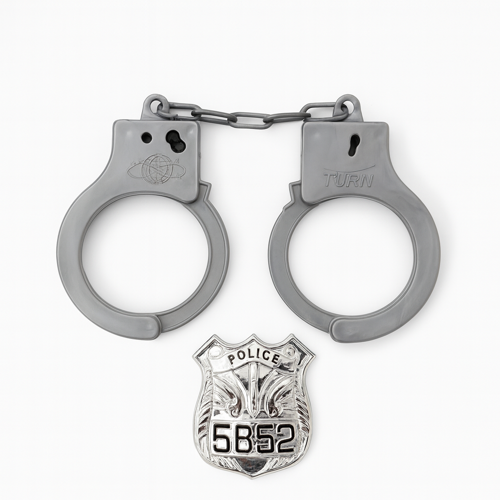 Acest set de catuse jucarie cu insigna este accesoriul perfect pentru micii pasionati de jocuri de rol cu politie si detectivi. Catusele sunt realizate din plastic rezistent, usor si sigur pentru copii, avand un design modern in nuante de gri. Insigna metalizata completa setul, oferind un aspect autentic si captivant.