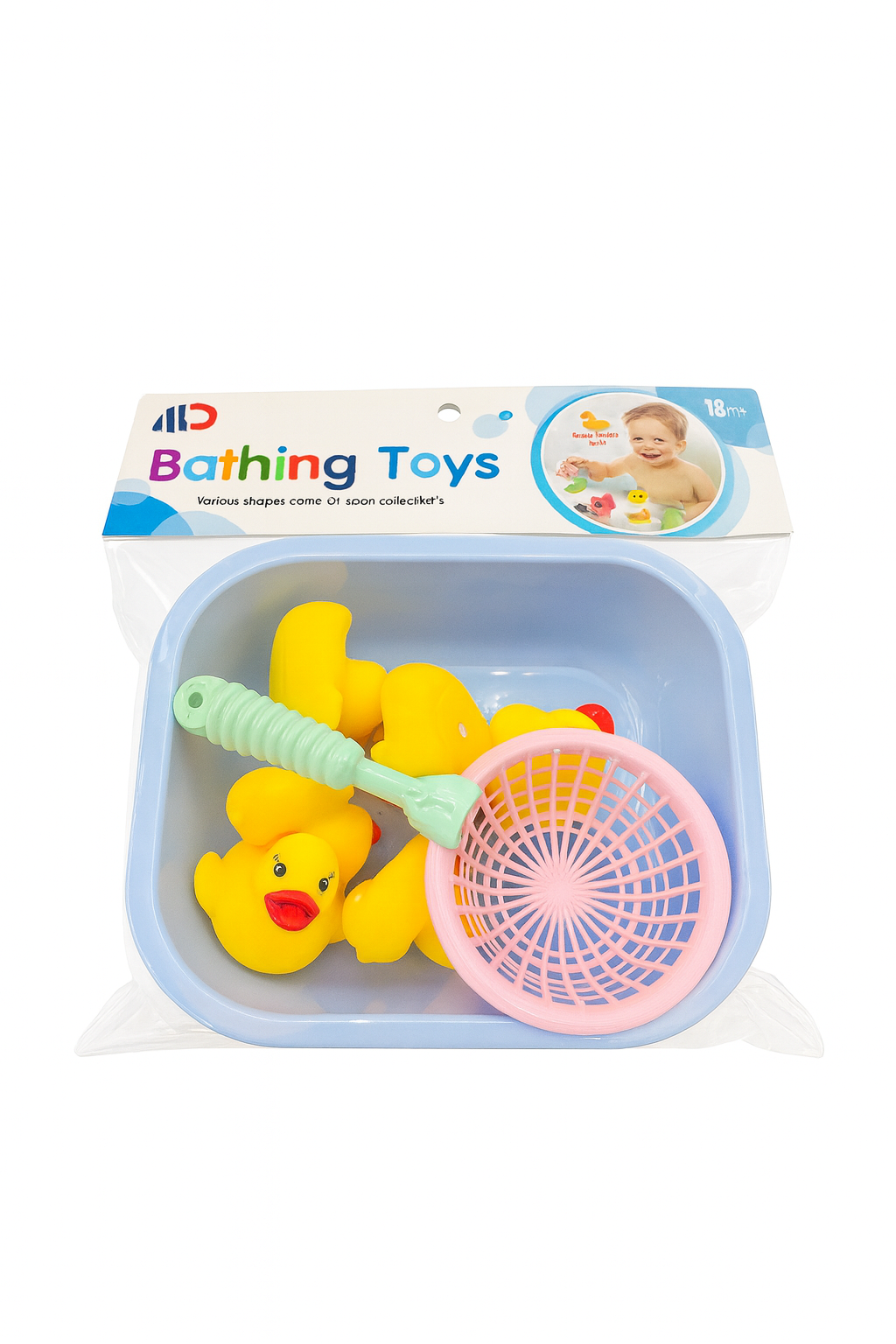Transforma timpul de baie intr-o experienta distractiva cu acest set vesel de jucarii pentru copii! Setul include o mini-cadita din plastic, mai multe ratuste galbene plutitoare si o sita tip plasa cu maner, perfecta pentru joaca interactiva si pentru dezvoltarea coordonarii celor mici.