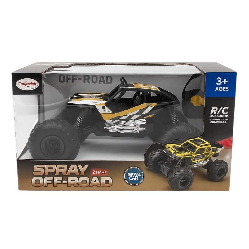 Intra in aventura cu Masina Off-Road cu Radiocomanda si efect de Spray, un model puternic si spectaculos, perfect pentru trasee dificile! Cu roti uriase, suspensii inalte si un design sport agresiv, aceasta masinuta 4x4 este pregatita sa cucereasca orice teren: pietris, pamant, iarba sau covor.