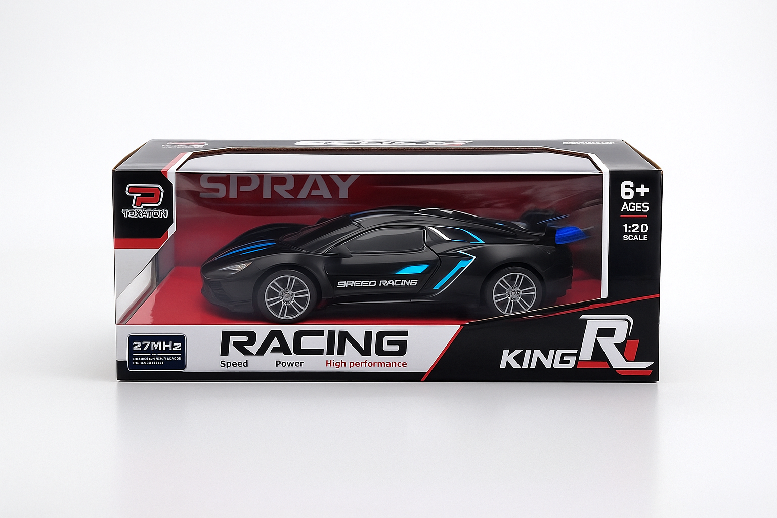 Aceasta masina Racing cu radiocomanda, scara 1:20, este alegerea perfecta pentru copiii pasionati de viteza si masini sport. Modelul are un design modern, stil sport, cu accente albastre care ii dau un aspect agresiv si futurist. Functioneaza pe frecventa 27 MHz si ofera control precis inainte, inapoi, stanga si dreapta, fiind usor de manevrat si de catre cei mai mici.