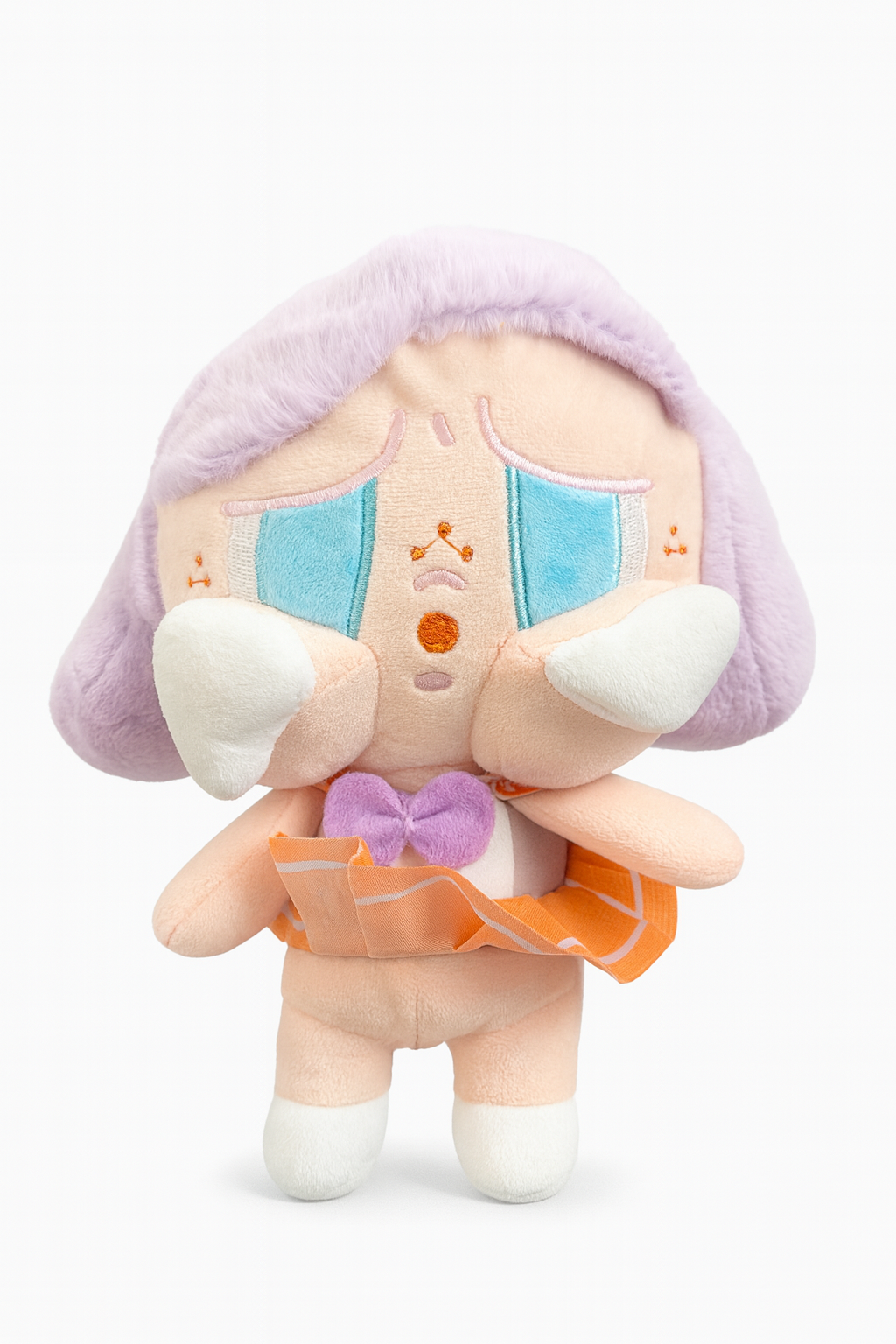 Papusa Tristuta Mov cu Fustita Portocalie 20 cm este o jucarie adorabila si expresiva, perfecta pentru cei care indragesc figurinele kawaii cu personalitate. Cu parul mov-pastel, ochii mari plini de lacrimi si manutele ridicate la obraji, aceasta papusa transmite emotie intr-un mod unic si extrem de dulce.