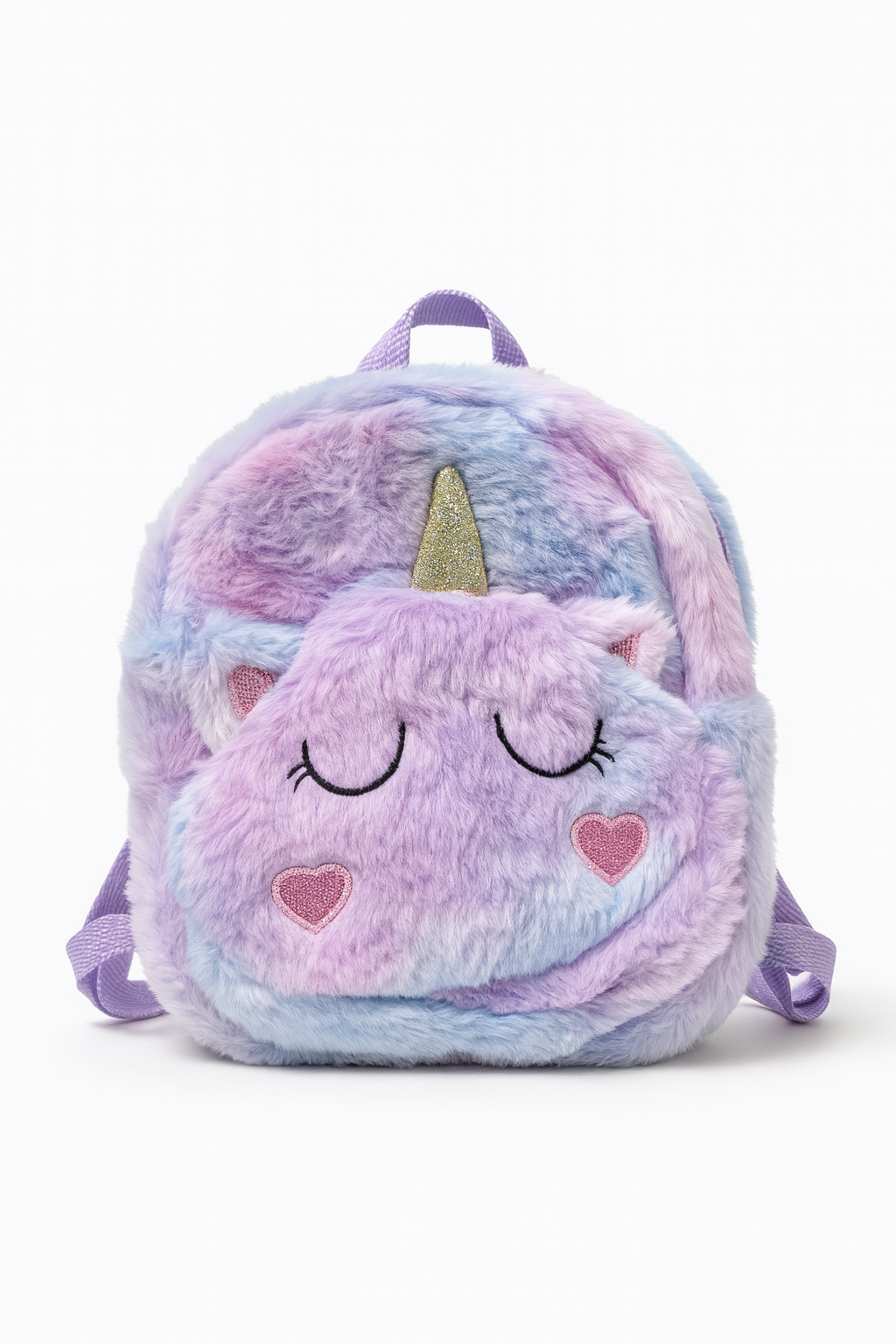 Rucsacul plus Unicorn mov multicolor 20x18 cm este accesoriul preferat al copiilor datorita designului adorabil si materialului super pufos. Realizat din plus moale, in nuante pastel de mov, roz si bleu, acest rucsac este perfect pentru gradinita, plimbari sau cadouri tematice.