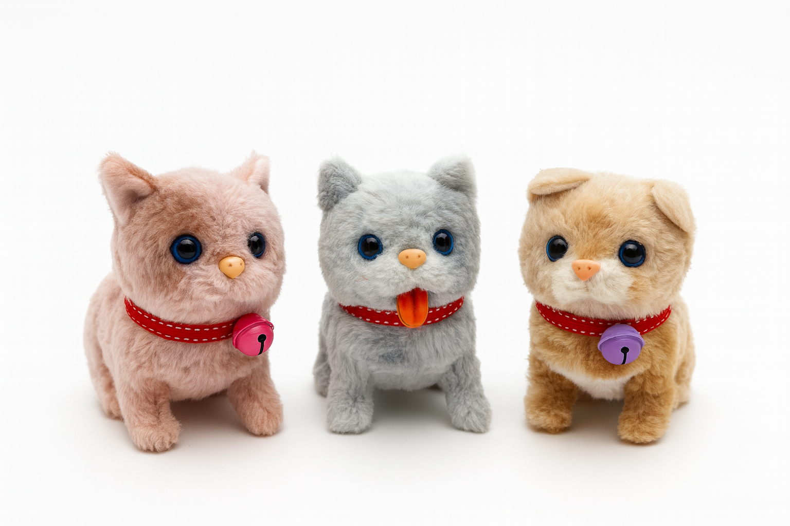 Acest set de 3 pisicute interactive este alegerea ideala pentru copiii care adora animalele pufoase si jucariile care prind viata. Fiecare pisicuta este realizata din plus moale, fin la atingere, avand detalii dragute precum ochi expresivi, botic delicat si o zgarda cu clopotel colorat care adauga farmec si realism.