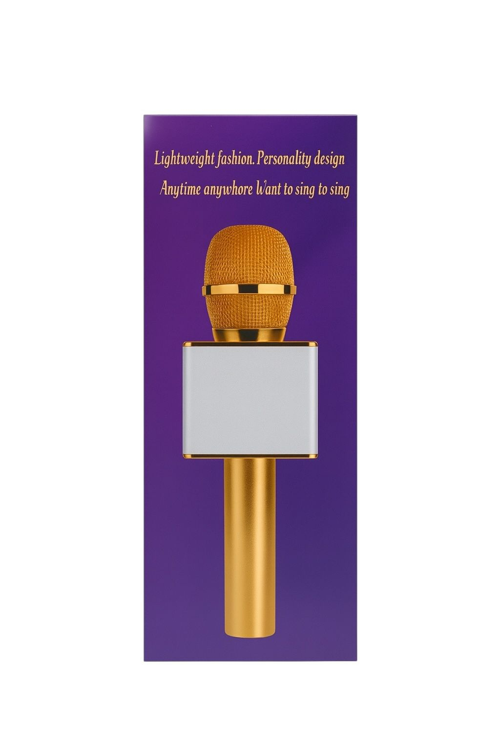 Transforma orice moment intr-un spectacol cu acest microfon fara fir (wireless), un sistem portabil 2-in-1 care combina un microfon de inalta calitate cu un difuzor HIFI integrat. Acest dispozitiv, in culoarea eleganta auriu/gold, este ideal pentru petreceri karaoke, divertisment, sau chiar prezentari, fiind usor de transportat oriunde, asa cum sugereaza si textul de pe ambalaj: "Anytime anywhere Want to sing to sing".