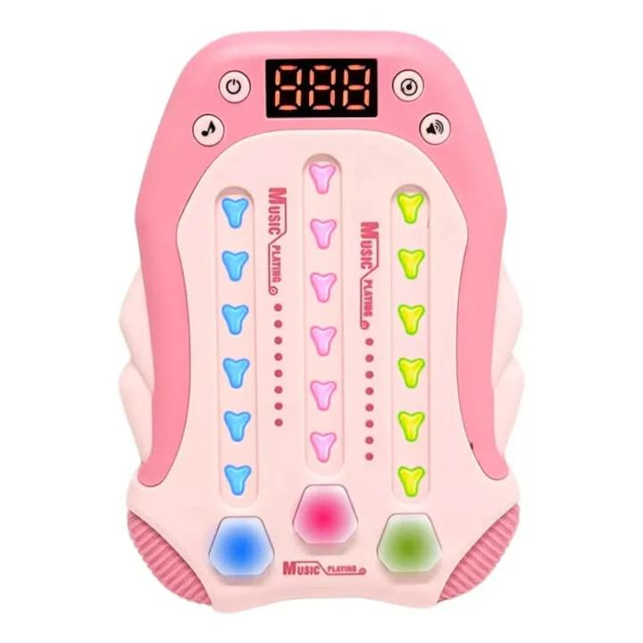 Descopera o experienta de joc antrenanta si plina de energie cu acest joc interactiv de ritm cu lumini si sunete, ideal pentru dezvoltarea reflexelor rapide, a memoriei si a coordonarii ochi-mana. Cu un design atragator in nuante de roz si alb si o forma futurista, de nava spatiala, aceasta jucarie este perfecta pentru copii (recomandat +3 ani). Jocul dispune de un afisaj digital care arata scorul sau timpul, butoane iluminate care ghideaza actiunea si efecte sonore captivante (muzica dinamica). Este o modalitate excelenta de a te distra singur sau de a concura cu prietenii pentru cel mai mare scor! Jucaria are multiple niveluri de dificultate si moduri de joc.
