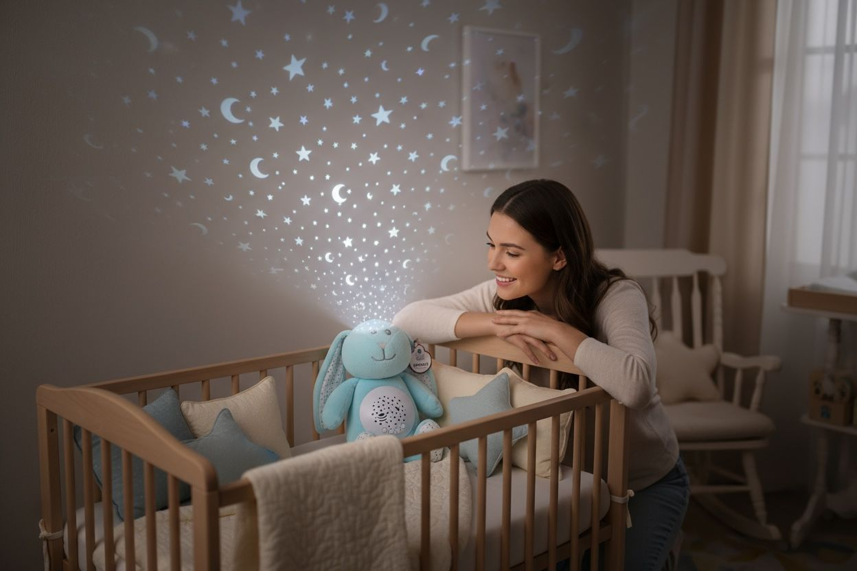 Iepurasul de plus cu proiectie si sunete linistitoare este companionul perfect pentru rutina de somn a bebelusului. Realizat din materiale moi si placute la atingere, acest iepuras proiecteaza stelute si lunite pe pereti si tavan, transformand camera intr-un spatiu calm si relaxant.