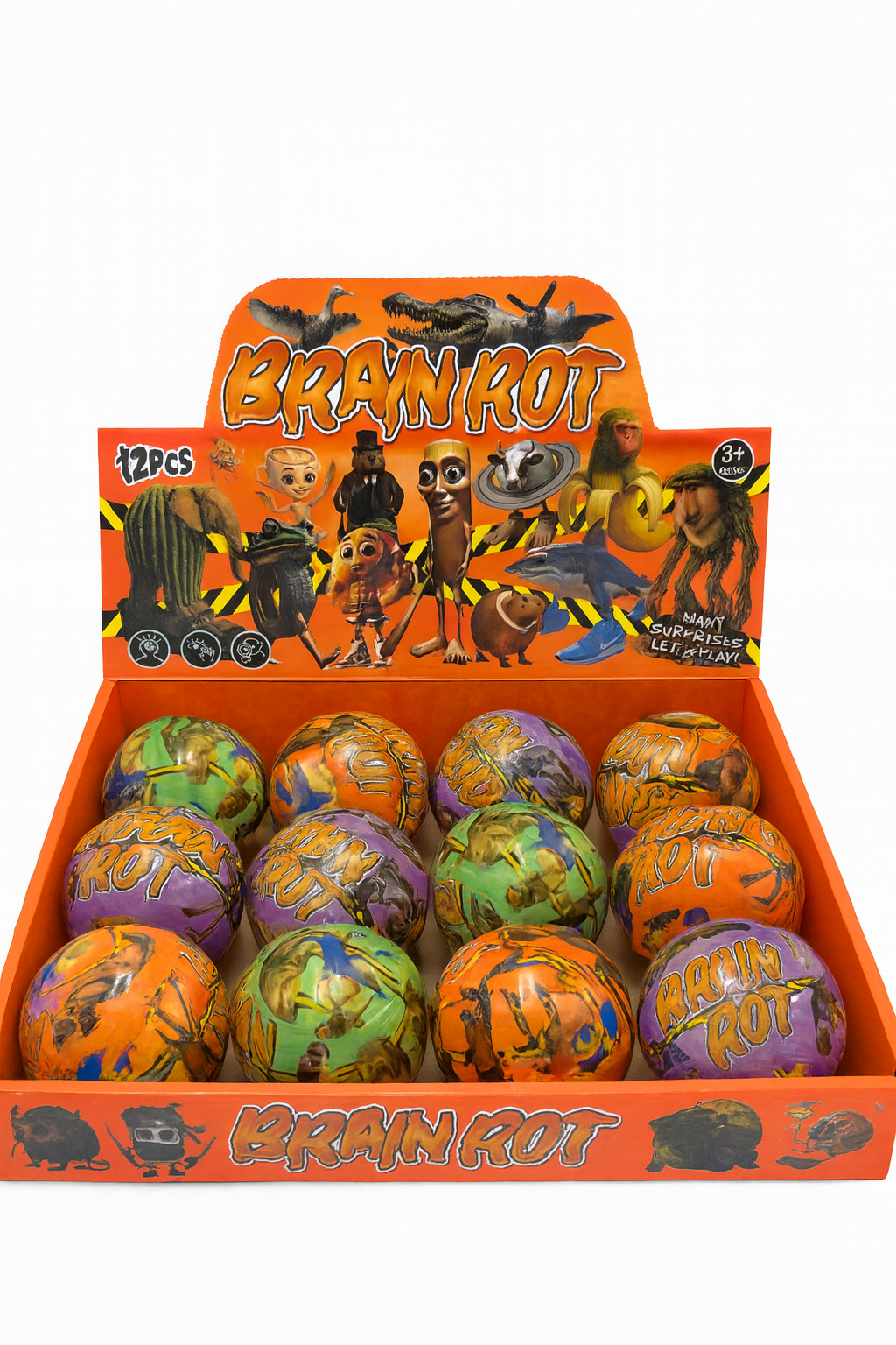 Acest set de 12 capsule surpriza “BRAIN ROT” este alegerea ideala pentru magazine care cauta produse cu impact vizual puternic si factor ridicat de surpriza. Fiecare capsula contine o figurina amuzanta, inspirata din personaje bizare si haioase, perfecte pentru copii si colectionari.