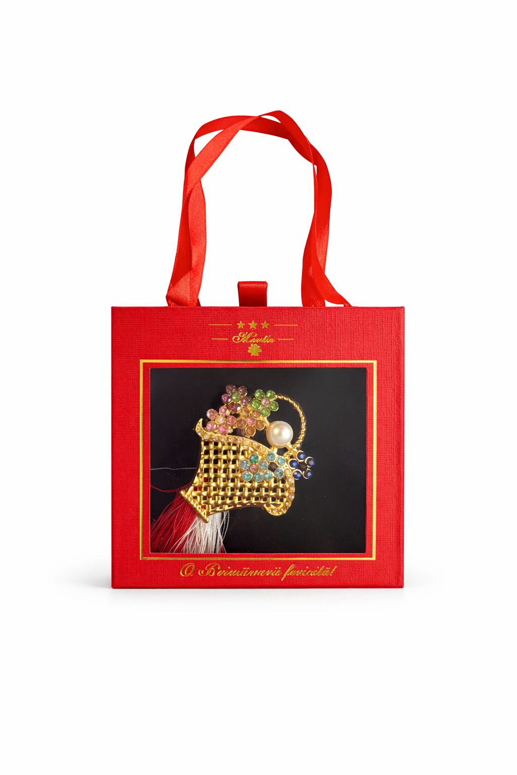 Pentru o nota de originalitate, alege brosa Martisor 5 cm, Geanta cu flori. Detaliile fine si culorile vii transforma aceasta brosa intr-o piesa de rezistenta, simbolizand cochetaria si bucuria inceputului de primavara.