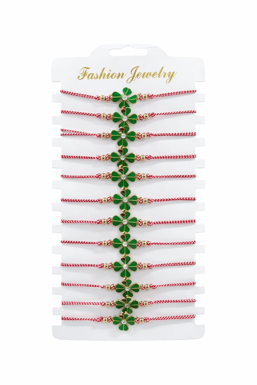 Alege simplitatea si puterea unui simbol consacrat cu acest set 12 bratari Martisor reglabile, Trifoi norocos. Trifoiul cu patru foi este renumit pentru energia sa pozitiva, fiind cel mai cautat accesoriu in perioada martisorului.