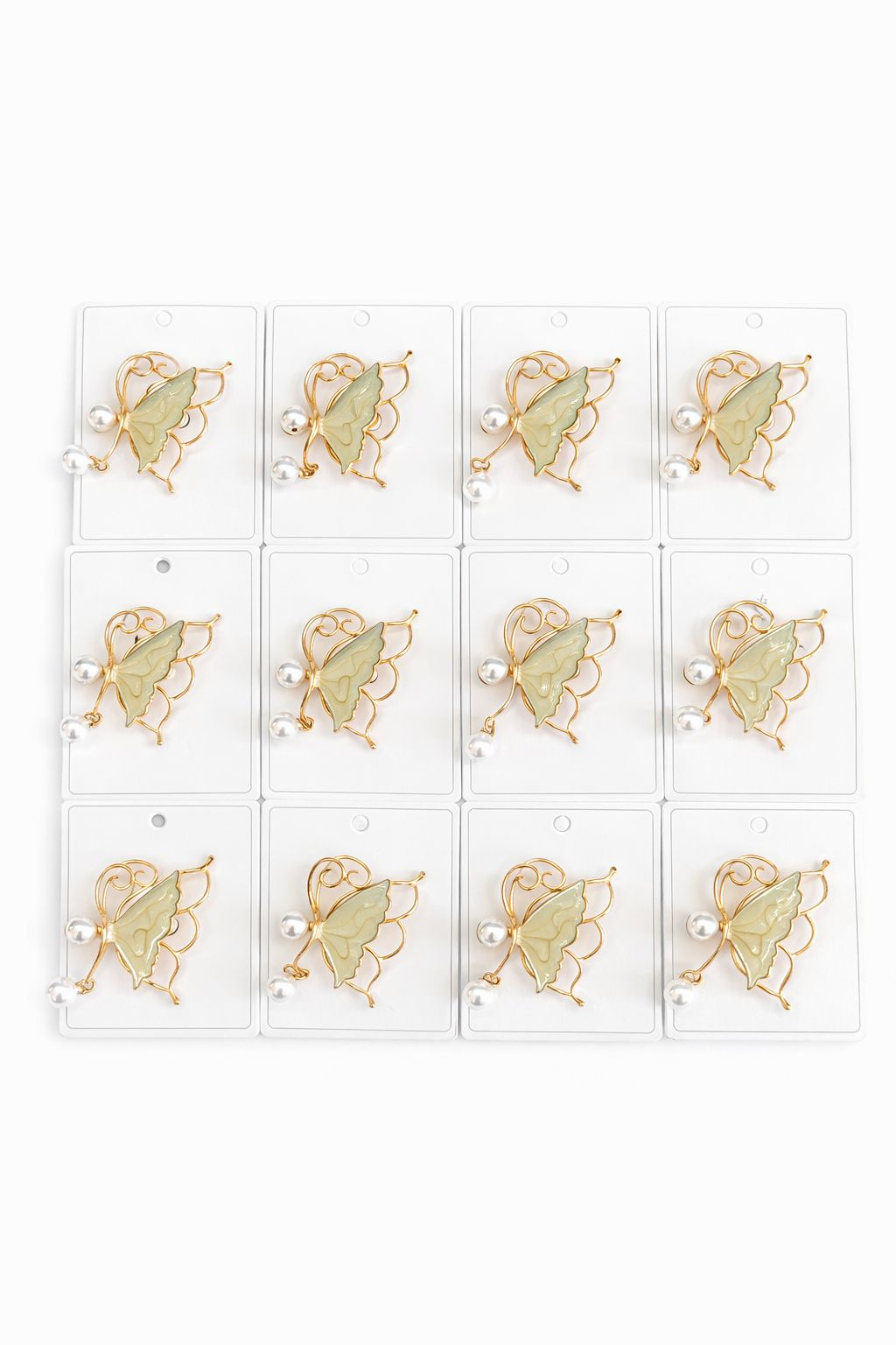 Gingasia intalneste luxul in acest set 12 brose Martisor, 5 cm, Fluture cu perle. Combinatia dintre albul perlelor, stralucirea cristalelor si forma gratioasa a fluturelui ofera acestui martisor un aspect de brosa de colectie.
